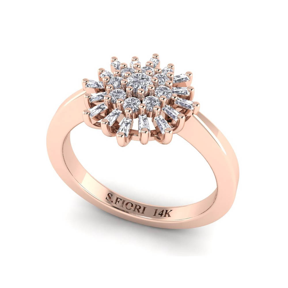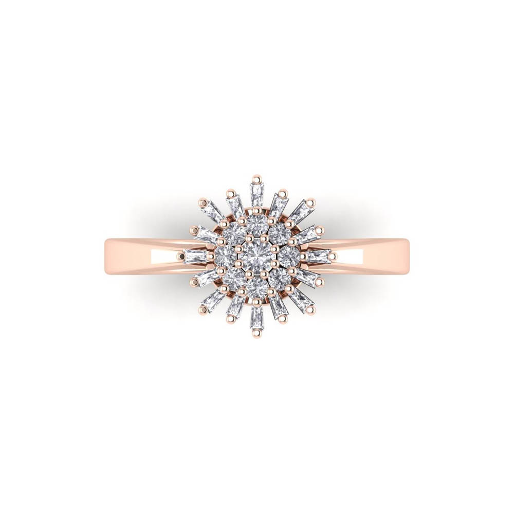 14K Gold White Diamond Ring Featuring 0.192 cts Baguette Shaped White Diamond, 0.196 cts Round Shaped White Diamond