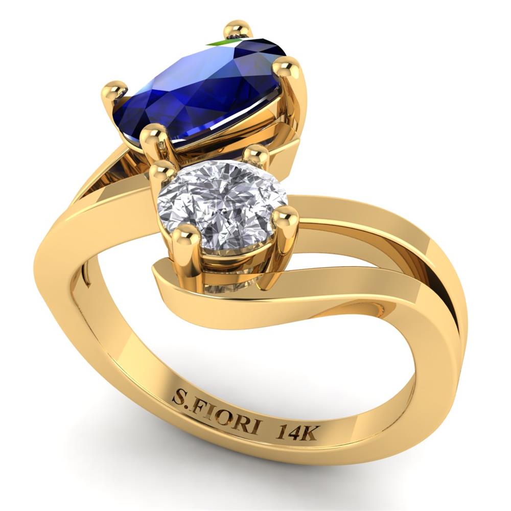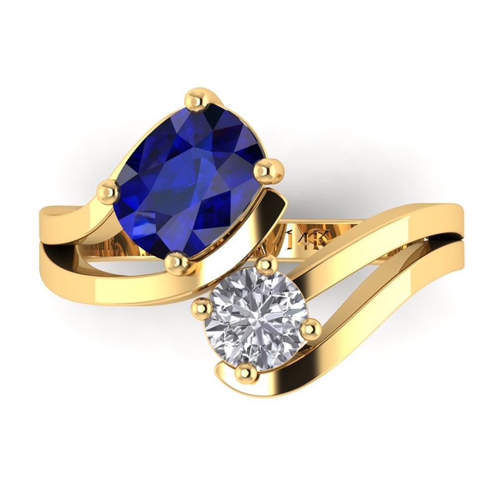 14K Gold Translucent Blue Sapphire Ring Featuring 2.00 Cts Cushion Shaped Blue Sapphire Surrounded By 0.56 Cts Round Brilliant Cut White Diamond