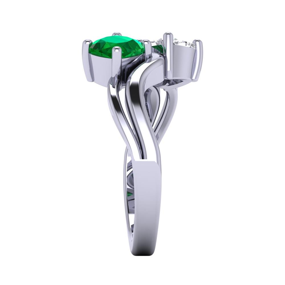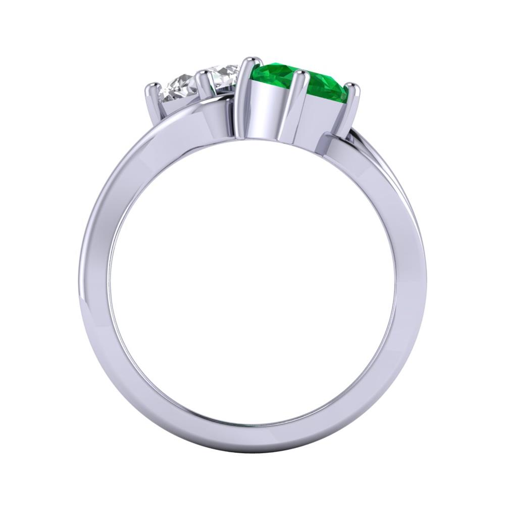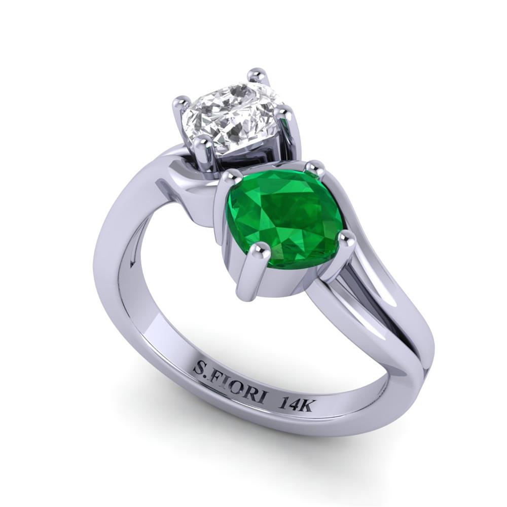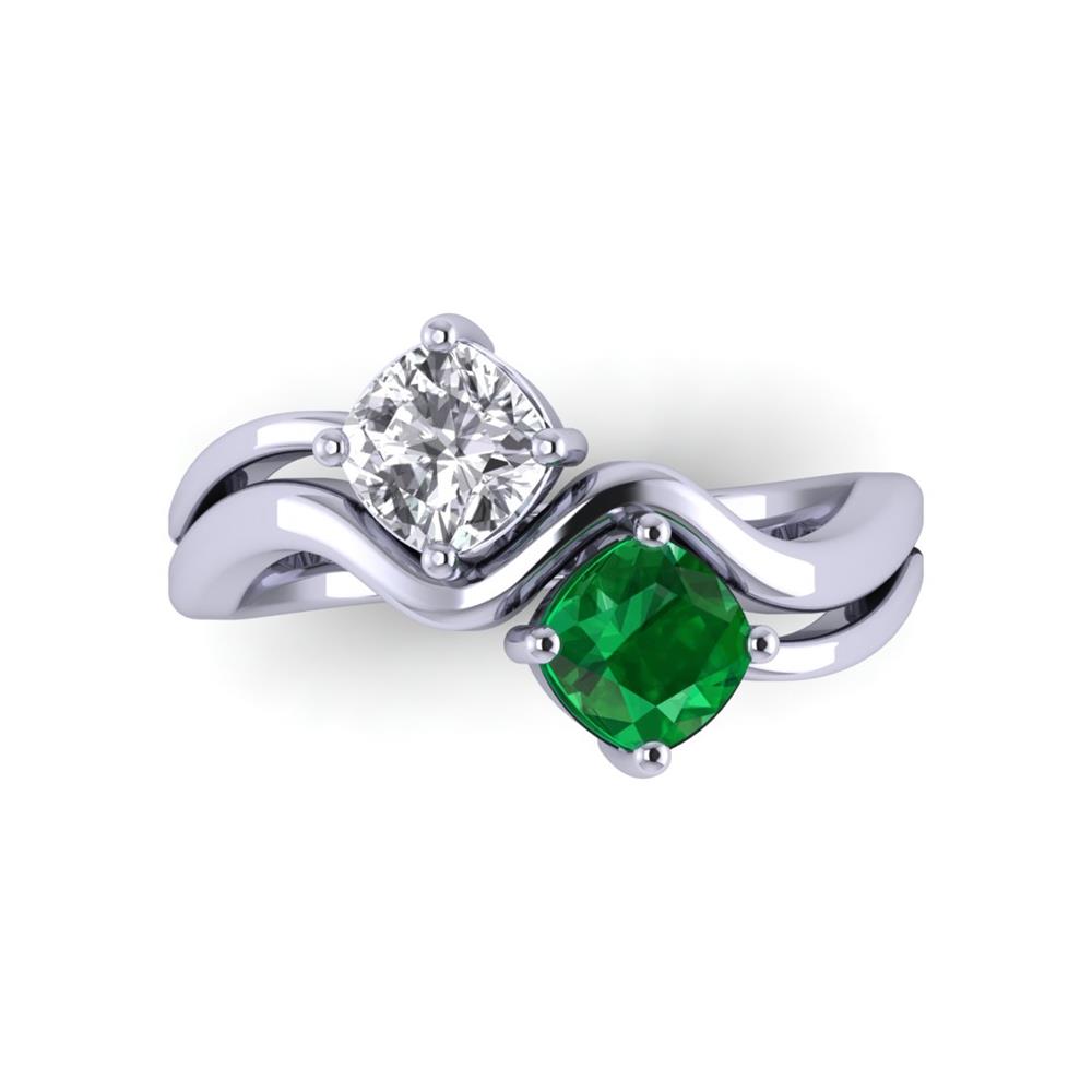 14K Gold Green Emerald Rings Featuring 0.75ct Cushion Shaped Green Emerald surrounded by 0.75 cts Cushion Shaped White Diamond