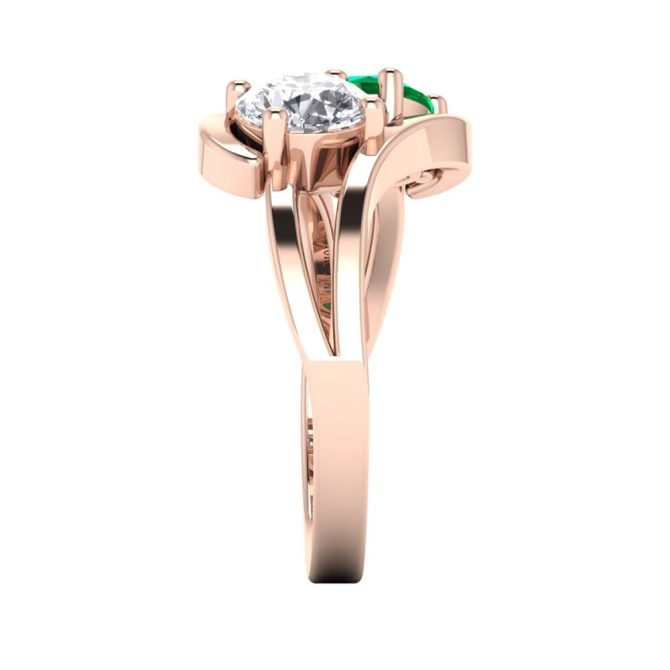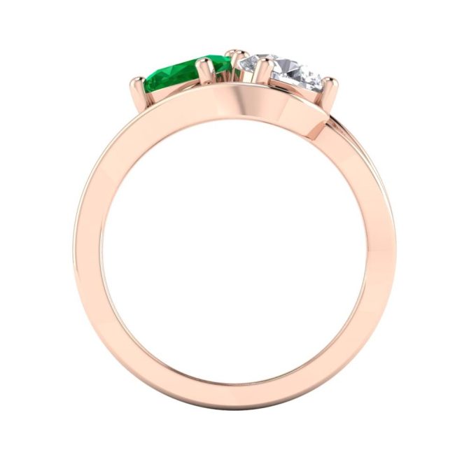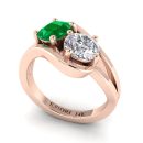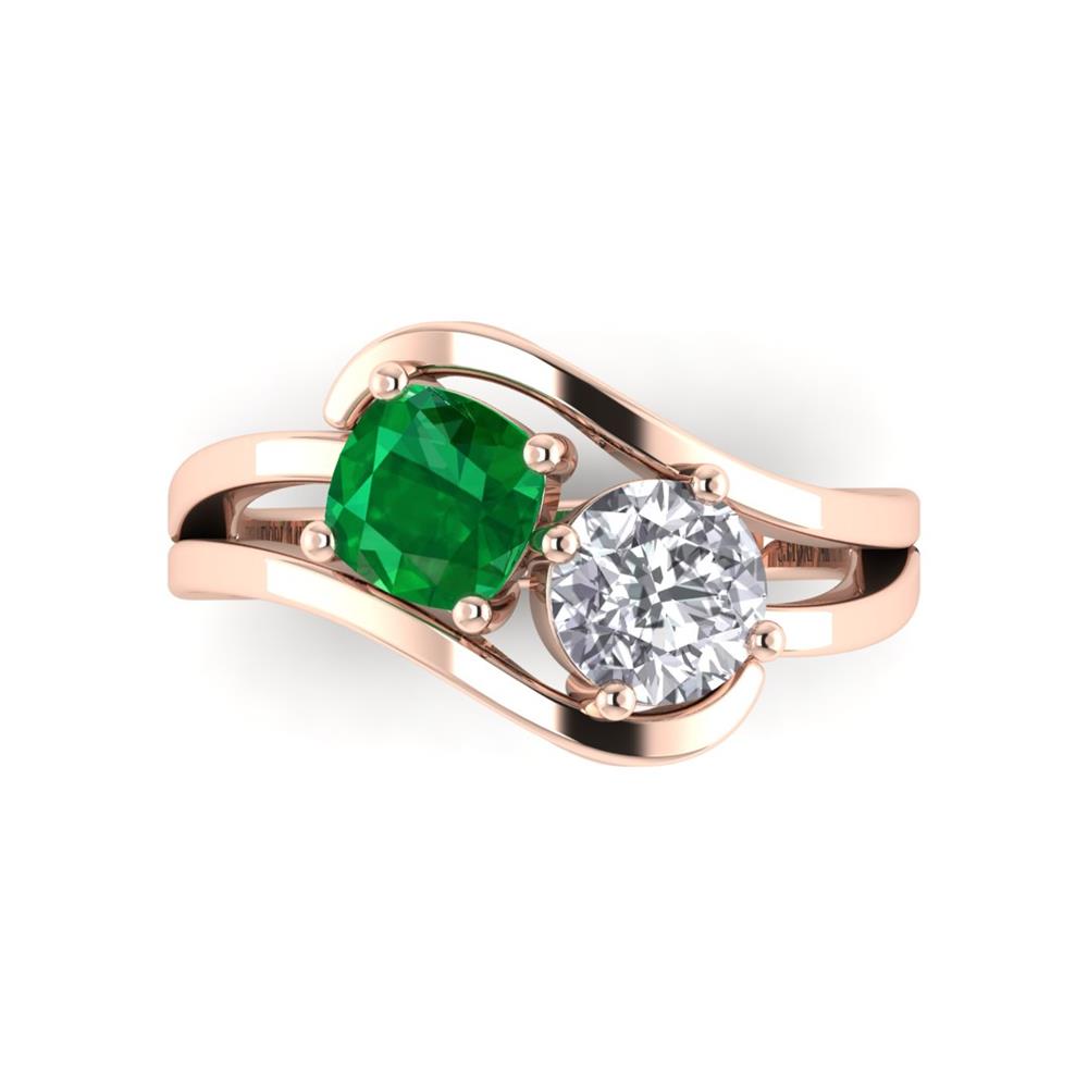 14K Gold Green Emerald Rings Featuring 1.14ct Cushion Shaped Green Emerald surrounded by 0.95 cts Round Shaped White Diamond