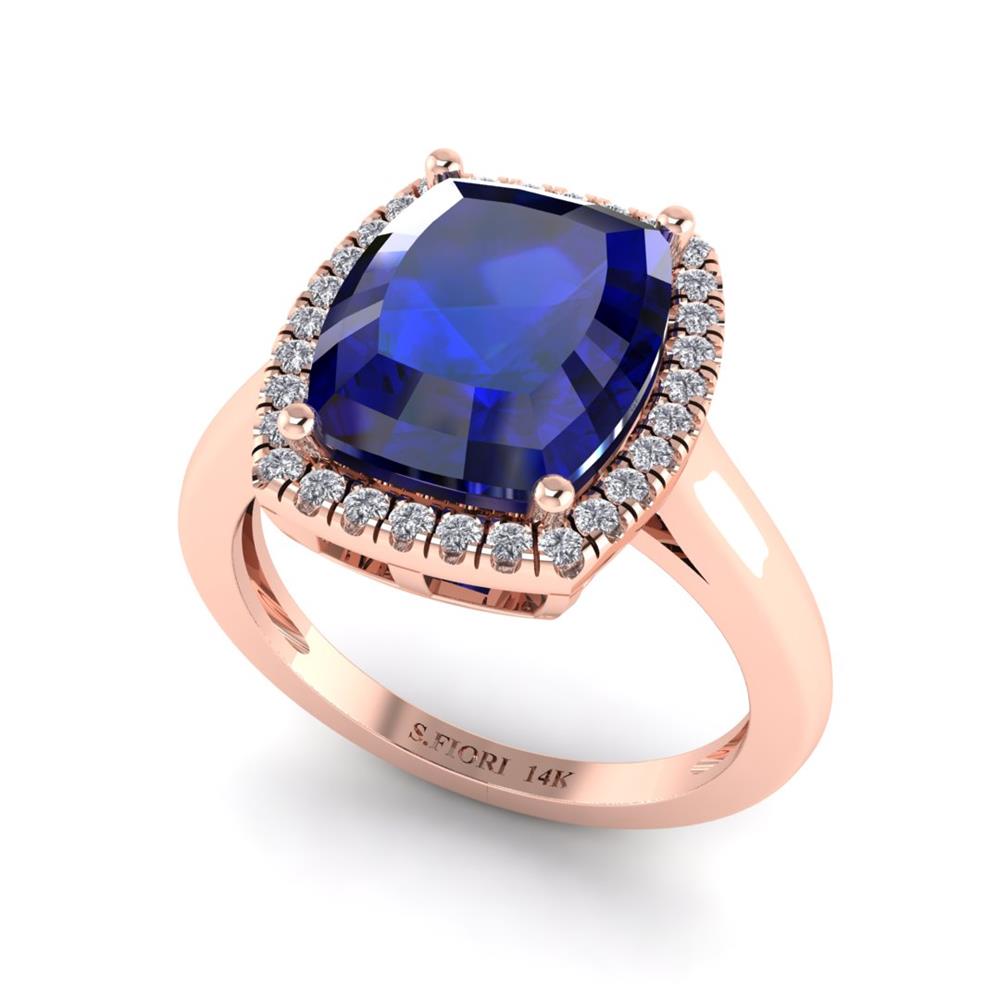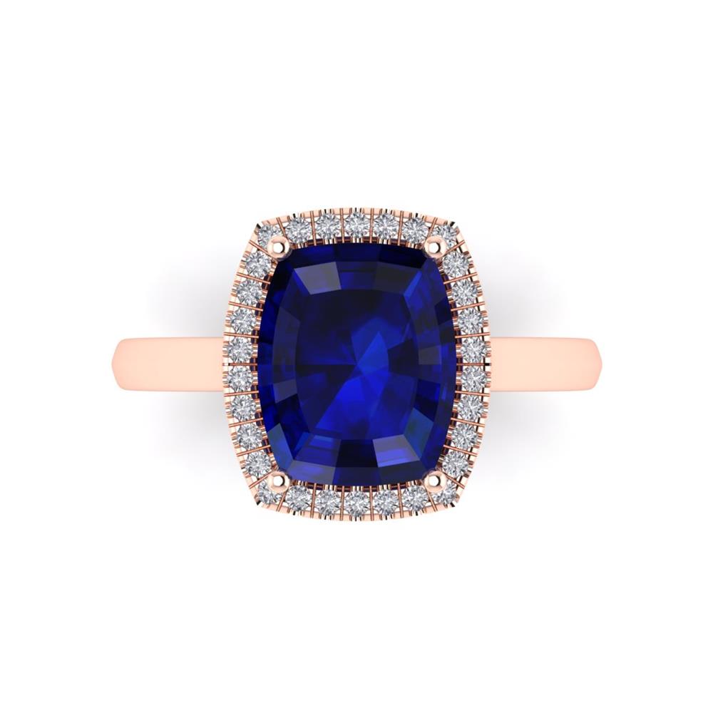 14K Gold Translucent Blue Sapphire Rings Featuring 3.00ct Cushion Shaped Blue Sapphire surrounded by 0.19 cts Round Shaped White Diamond