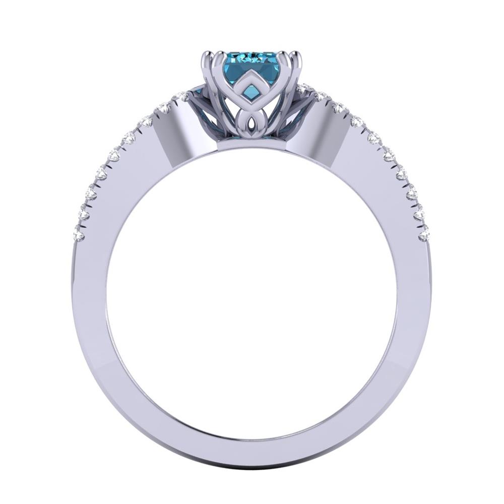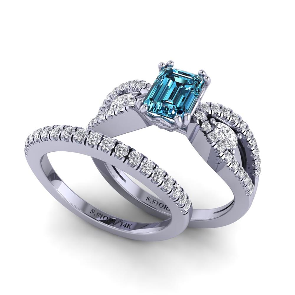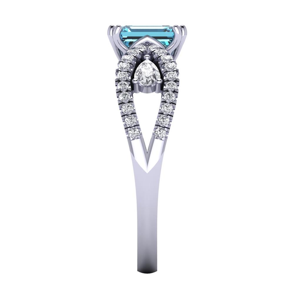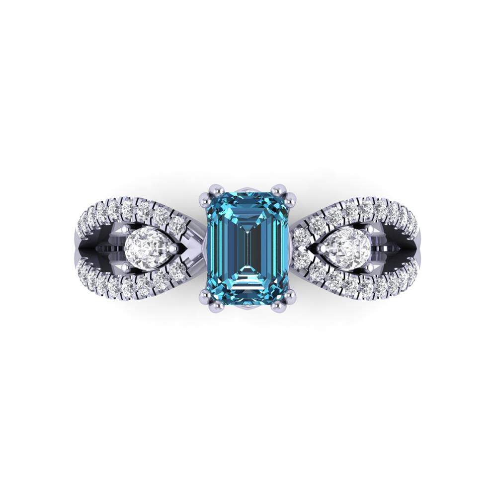 14K Gold Blue Diamond Enhanced Color Ring Featuring 1.00 Emerald cut Shaped Blue Diamond Enhanced Color surrounded by 0.19 cts Pear Shaped White Diamond, 0.25 cts Round Shaped White Diamond