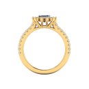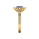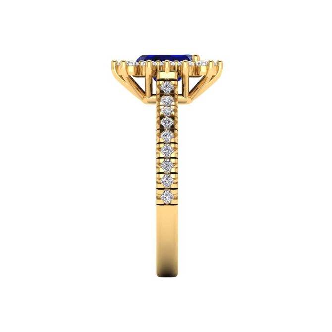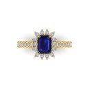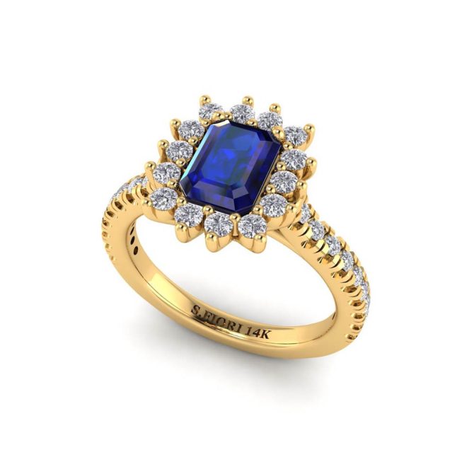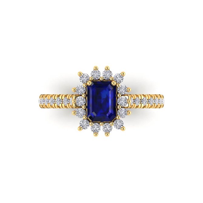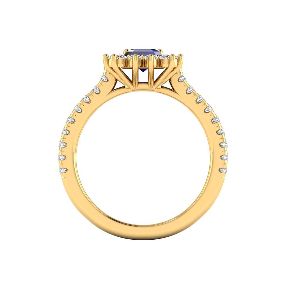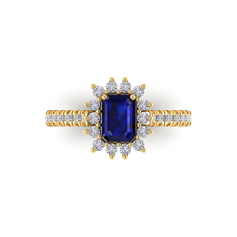 14K Gold Translucent Blue Sapphire Ring Featuring 1.00 Cts Emerald cut Shaped Blue Sapphire Surrounded by 0.58 cts Round Shaped White Diamond