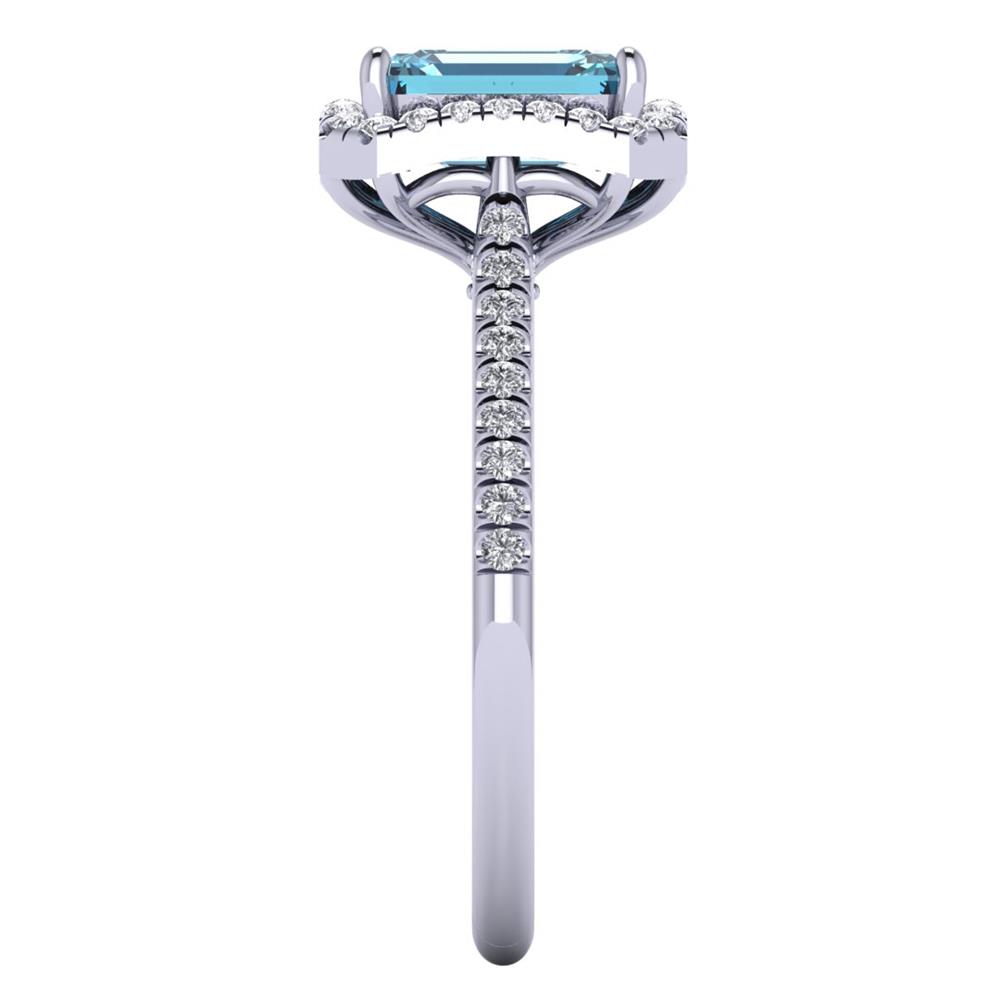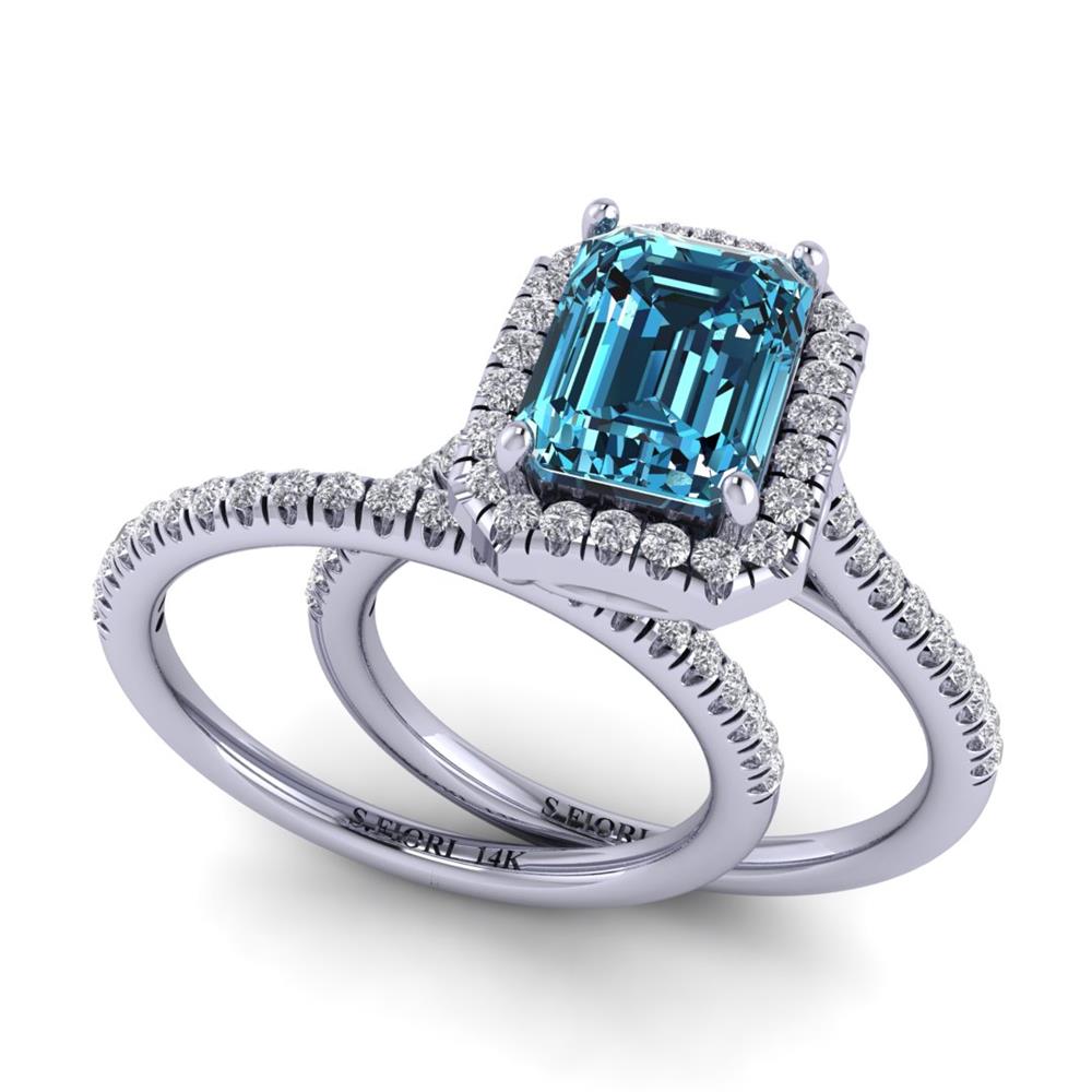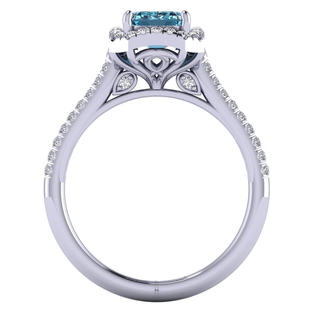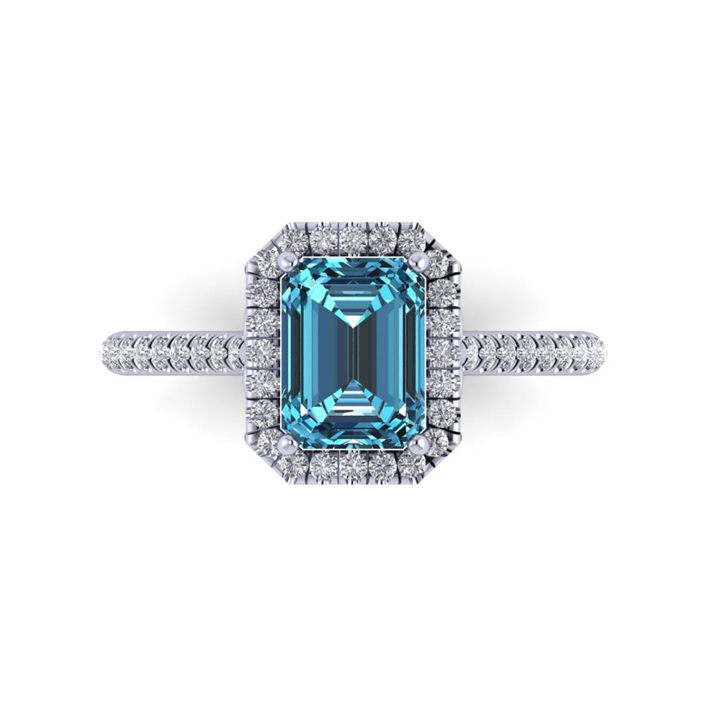 14K Gold Blue Diamond Enhanced Color Ring Featuring 1.70 Emerald cut Shaped Blue Diamond Enhanced Color surrounded by 0.29 cts Round Shaped White Diamond
