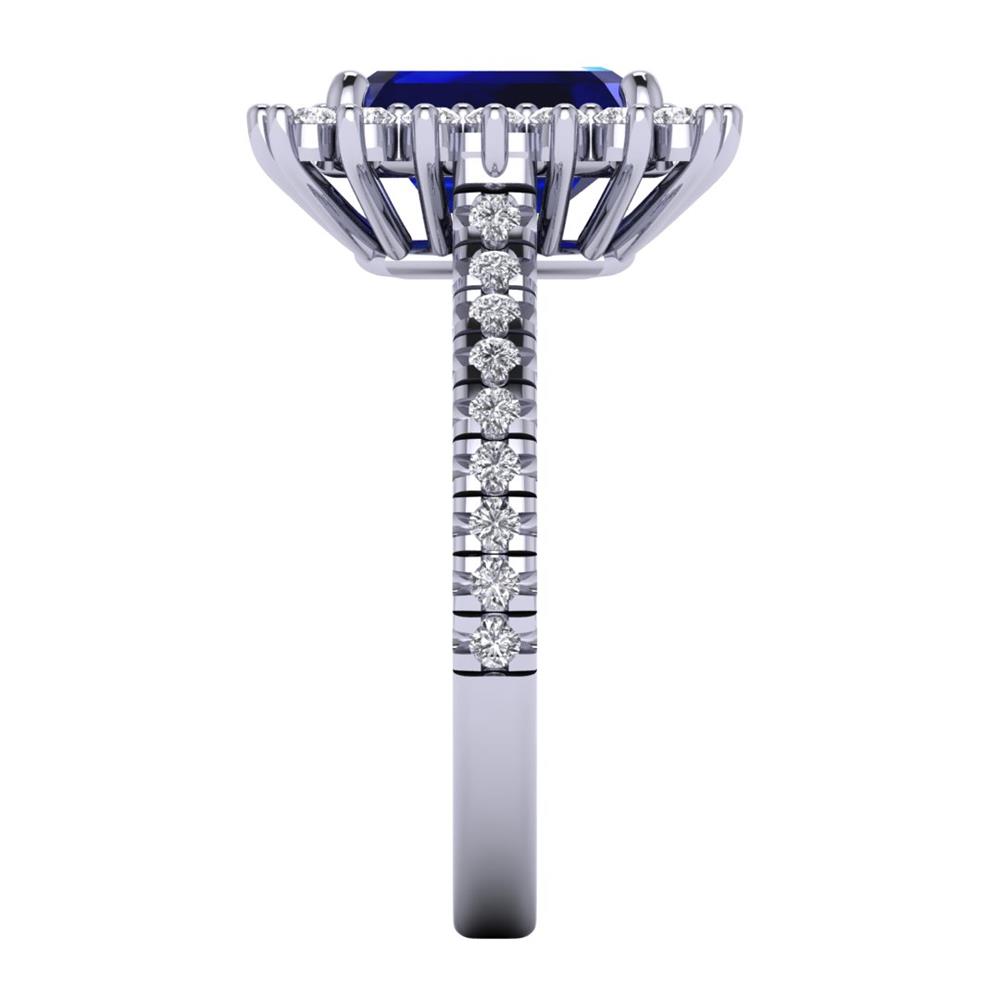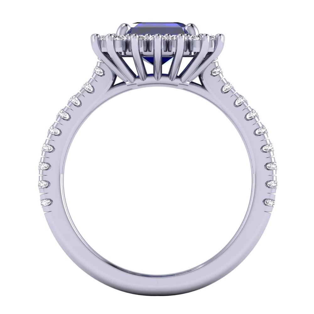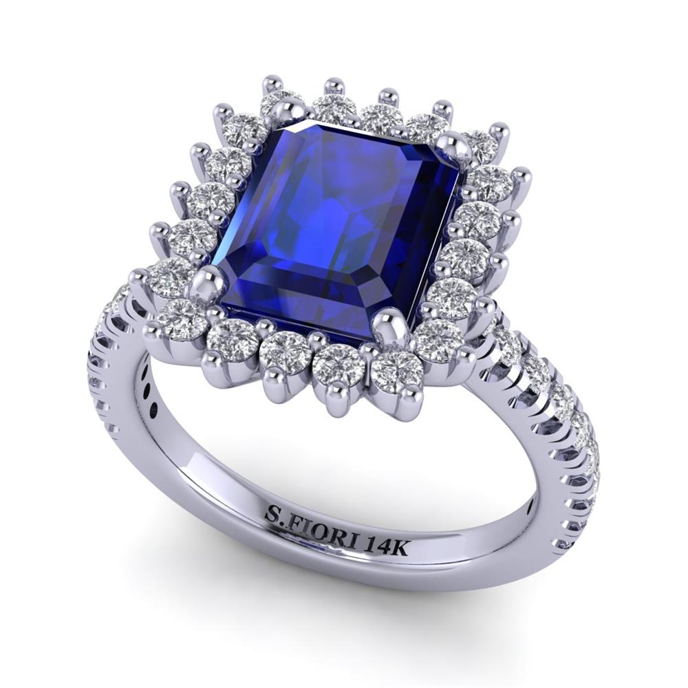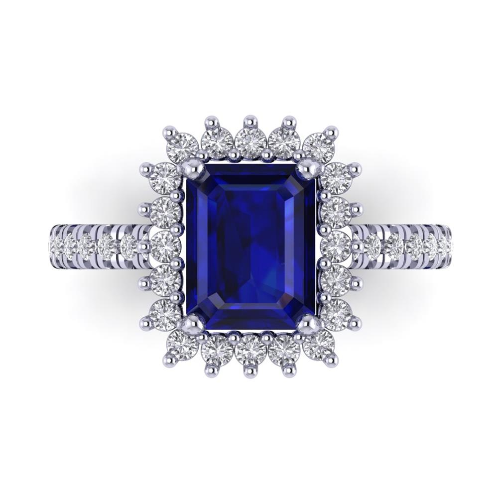 14K Gold Translucent Blue Sapphire Ring Featuring 2.50 Emerald cut Shaped Translucent Blue Sapphire surrounded by 0.37 Round White Diamond
