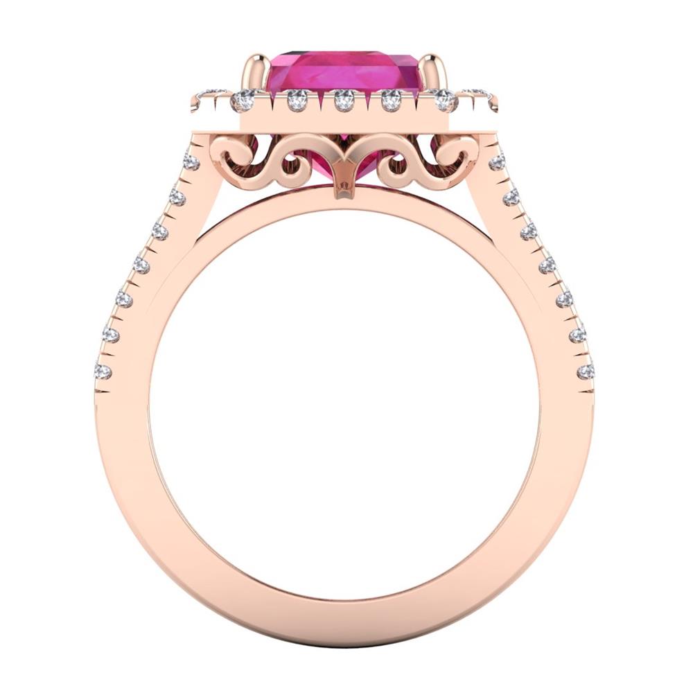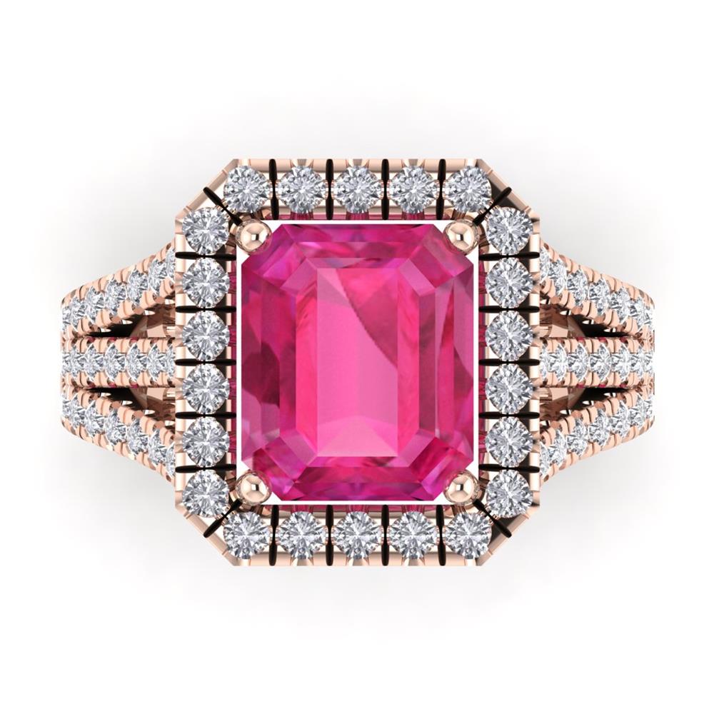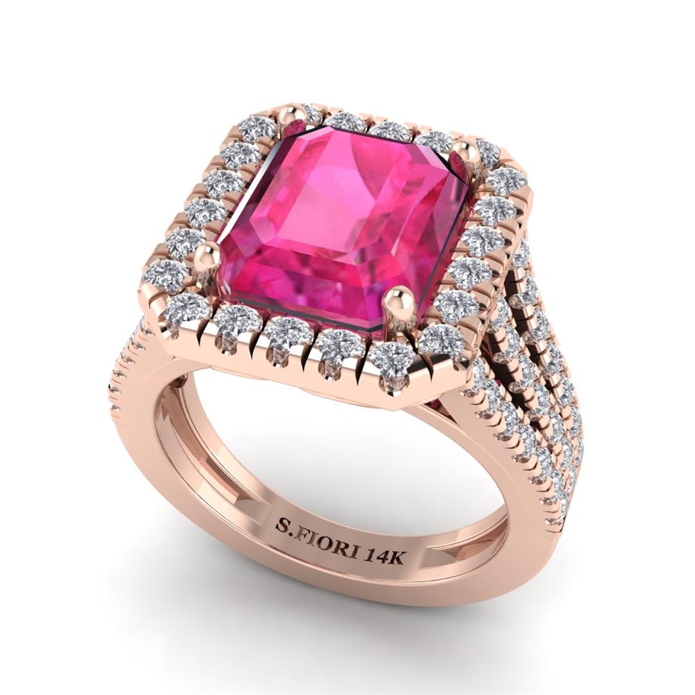 14K Gold Translucent Blue Sapphire Ring Featuring 3.50 Emerald cut Shaped Translucent Blue Sapphire surrounded by 0.55 Round White Diamond