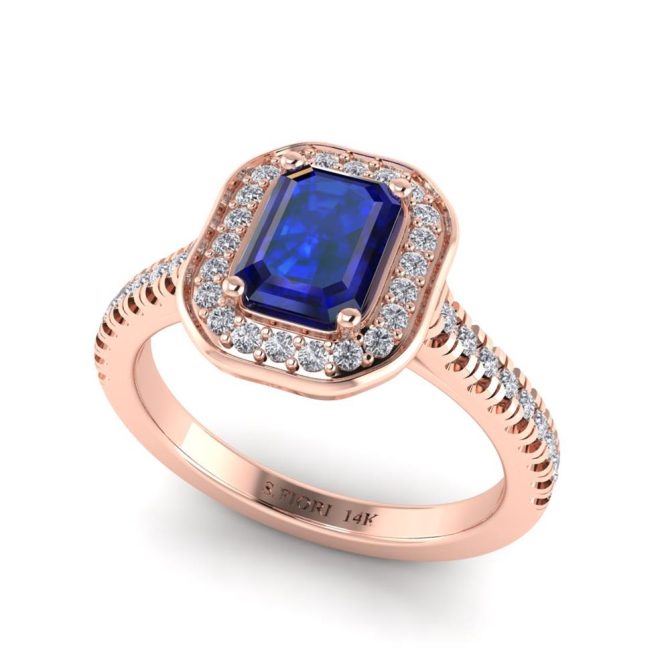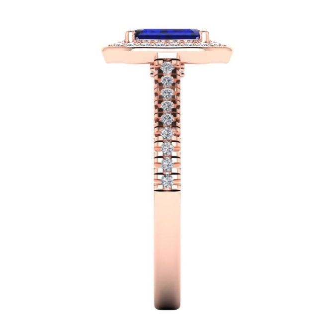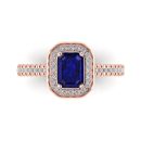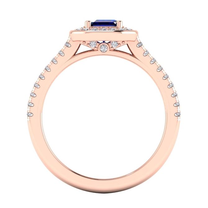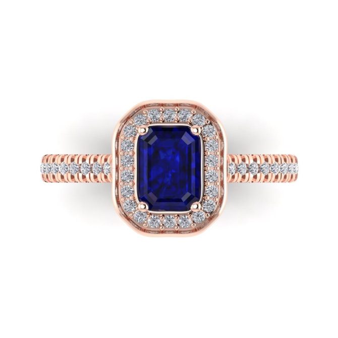 14K Gold Translucent Blue Sapphire Rings Featuring 1.00ct Emerald cut Shaped Blue Sapphire surrounded by 0.30 cts Round Shaped White Diamond