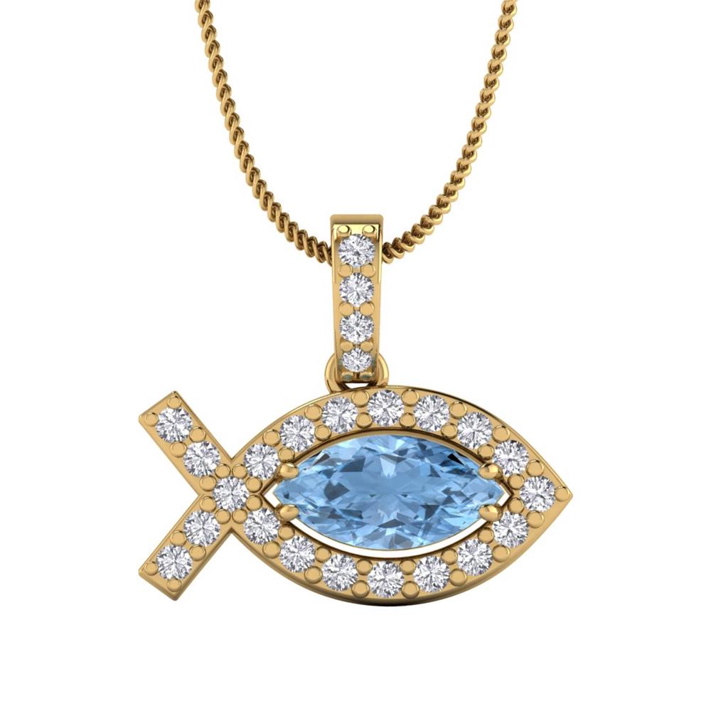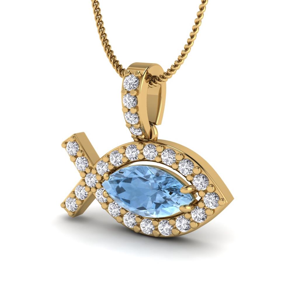 14K Gold Peaceful Aquamarine Pendant Featuring 0.98 ct Marquise Shaped Peaceful Aquamarine