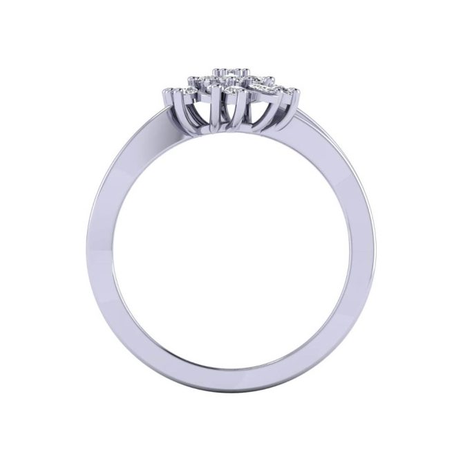 14K Gold White Diamond Ring Featuring 0.078 cts Marquise Shaped White Diamond, 0.325 cts Round Shaped White Diamond