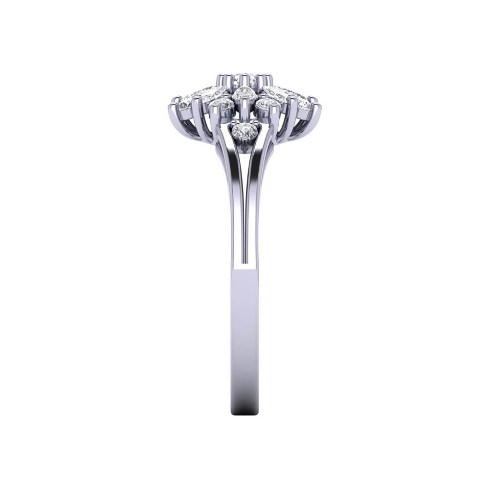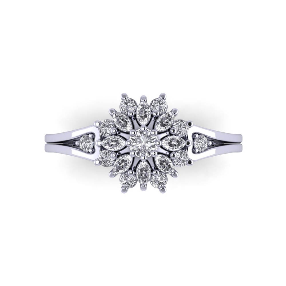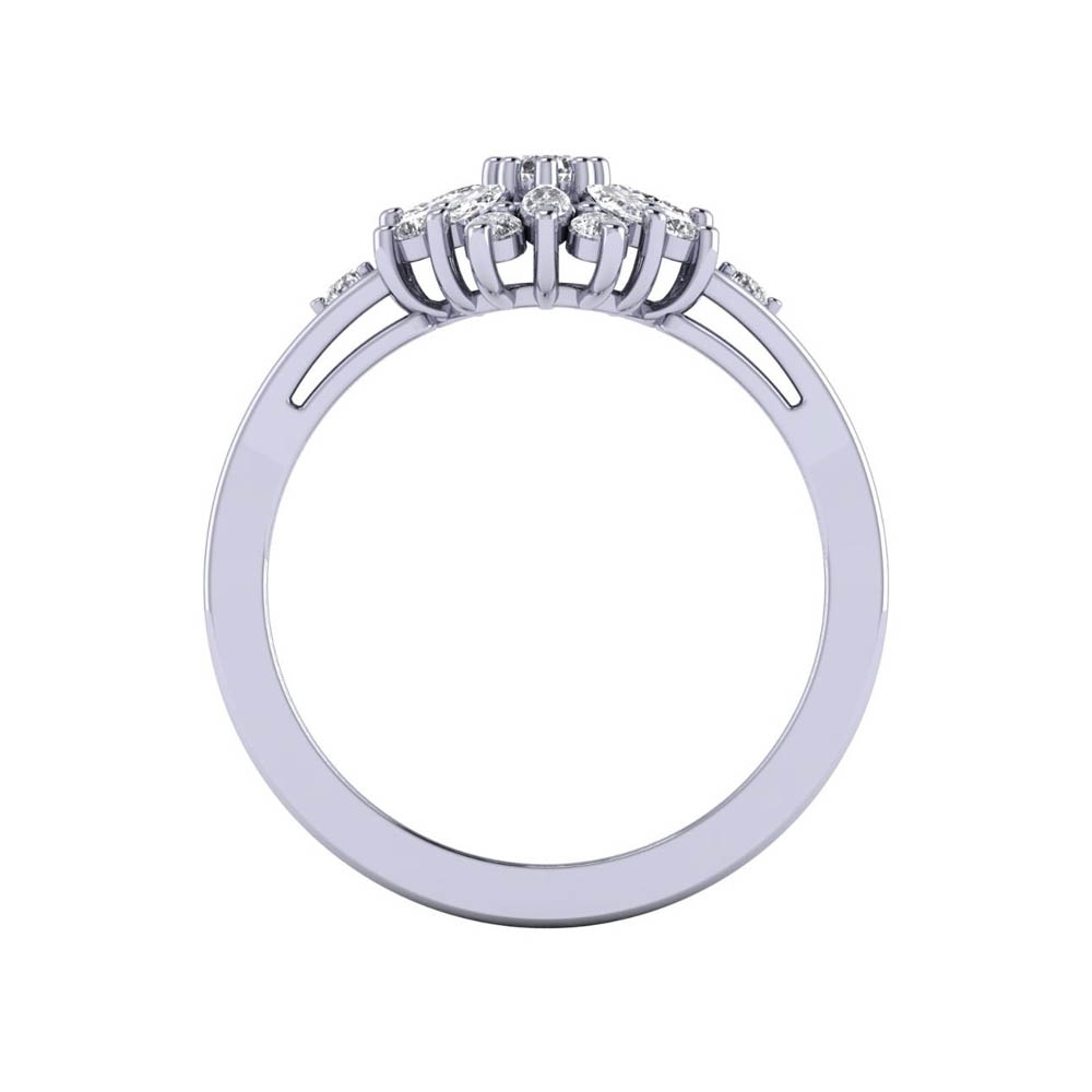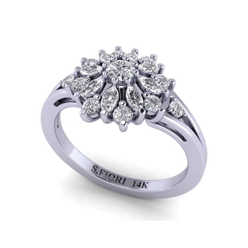 14K Gold White Diamond Ring Featuring 0.2 cts Marquise Shaped White Diamond, 0.35 cts Round Shaped White Diamond
