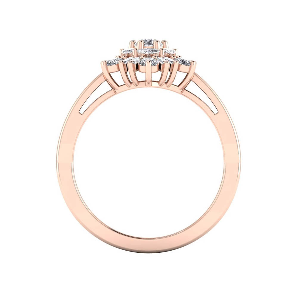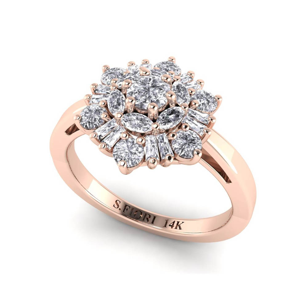 14K Gold White Diamond Ring Featuring 0.24 cts Baguette Shaped White Diamond, 0.3 cts Marquise Shaped White Diamond, 0.46 cts Round Shaped White Diamond