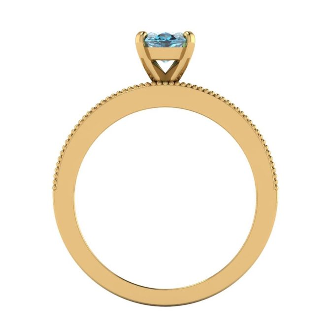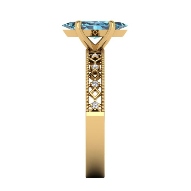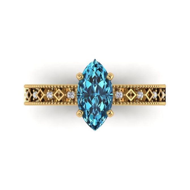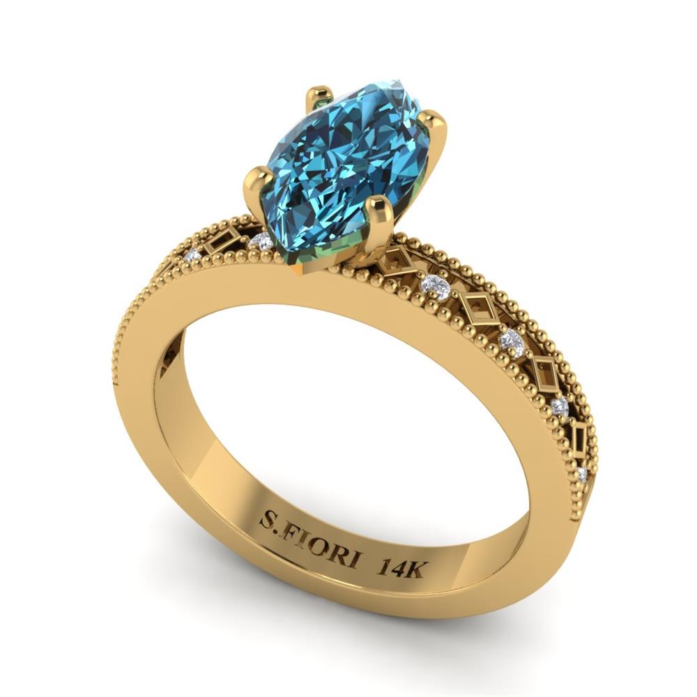 14K Gold Blue Diamond Enhanced Color Ring Featuring 1.00 Marquise Shaped Blue Diamond Enhanced Color surrounded by 0.05 Round White Diamond