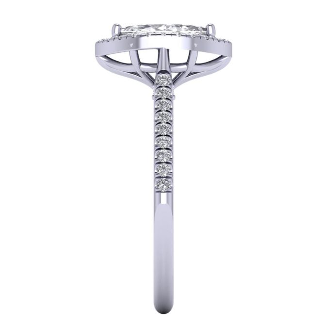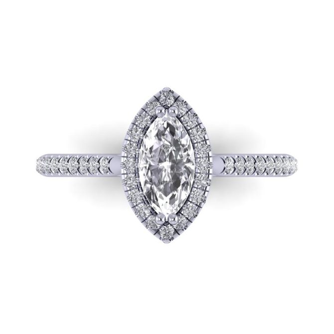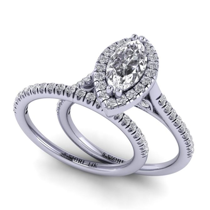 14K Gold Blue Diamond Enhanced Color Ring Featuring 0.60 Marquise Shaped Blue Diamond Enhanced Color surrounded by 0.48 cts Round Shaped White Diamond