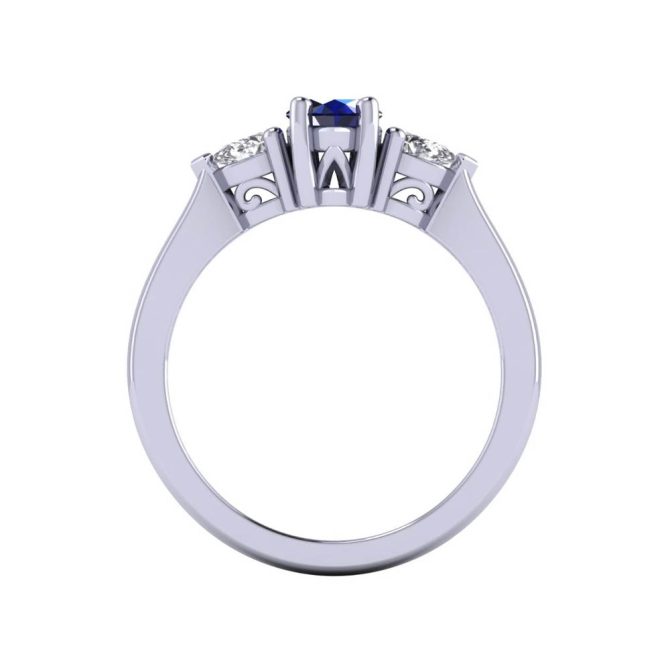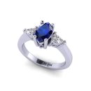 14K Gold Translucent Blue Sapphire Ring Featuring 1.50 Cts Marquise Shaped Blue Sapphire Surrounded by 0.50 Cts Pear Cut White Diamond