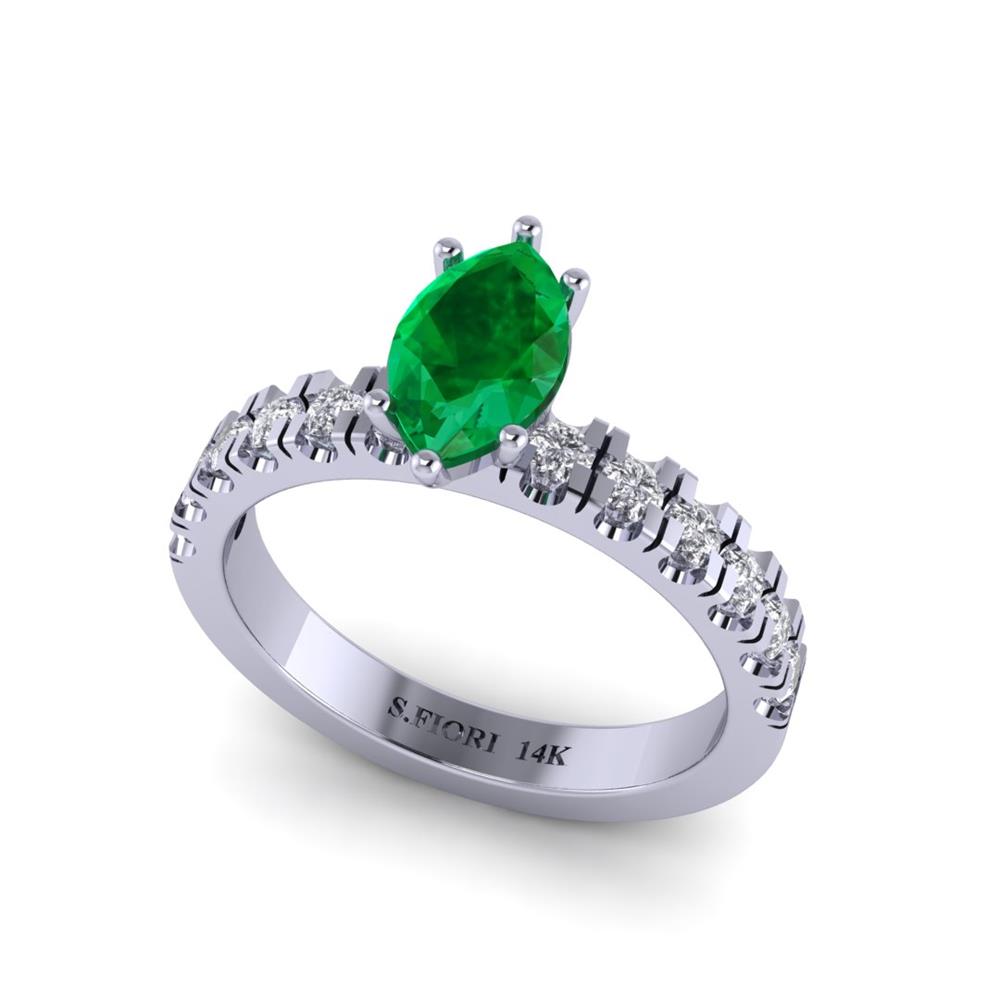 14K Gold Translucent Blue Sapphire Rings Featuring 0.70ct Marquise Shaped Blue Sapphire surrounded by 0.42 cts Round Shaped White Diamond