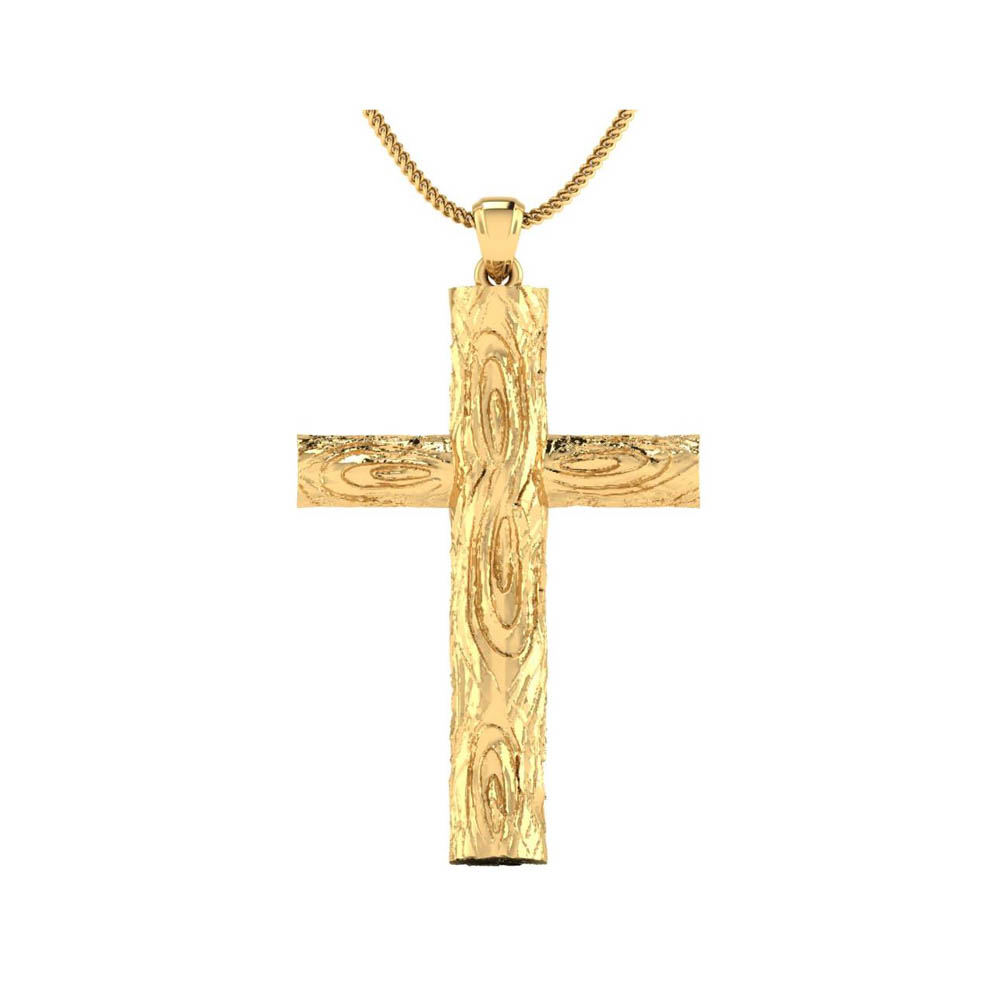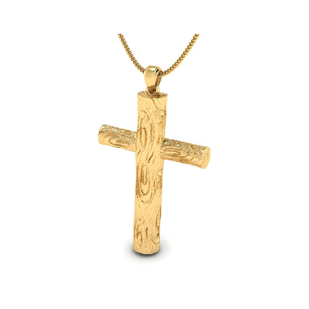 14K Gold oG Collection Worship Cross Pendant Featuring Round Wooden Textured traditional Cross in size 25x18mm.