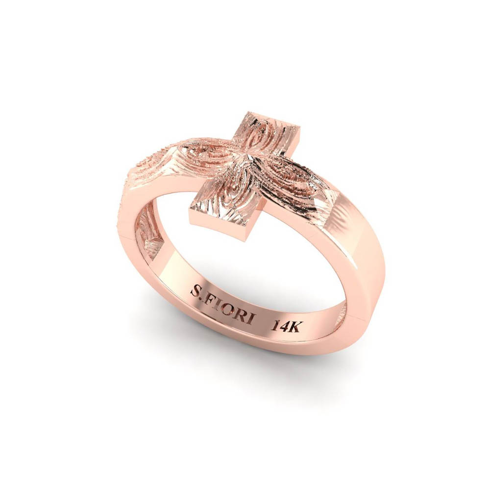 14K Gold oG Collection Worship Cross Ring Featuring Wooden Textured Square Cross Ring
