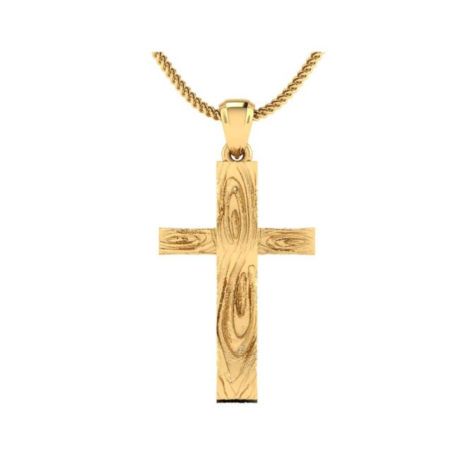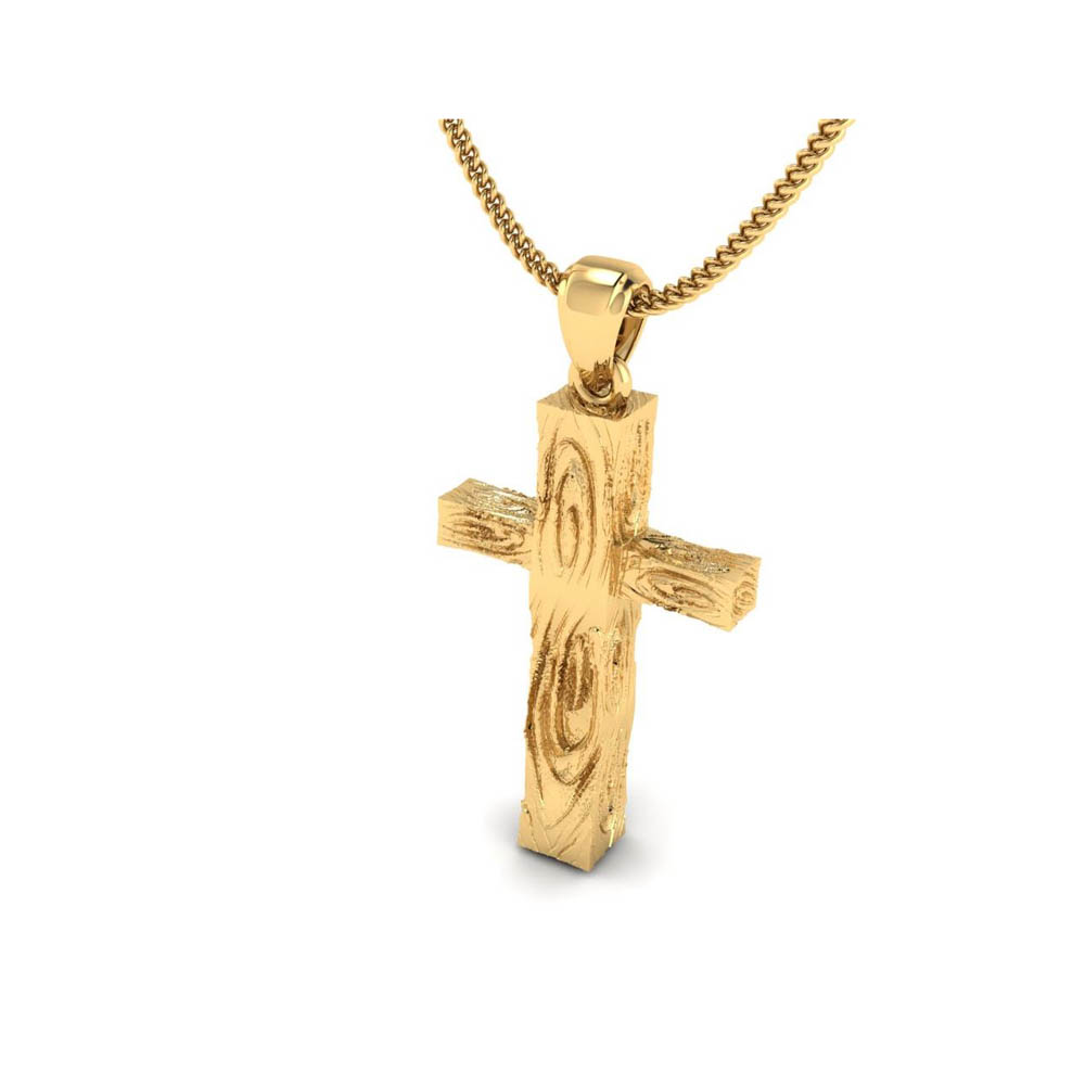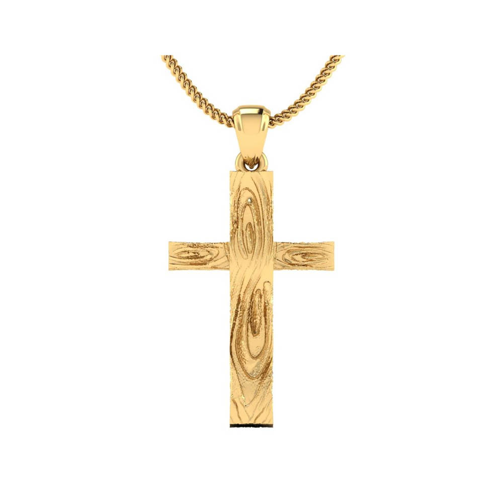 14K Gold oG Collection Worship Cross Pendant Featuring Square Wooden Textured traditional Cross in size 25x18mm.