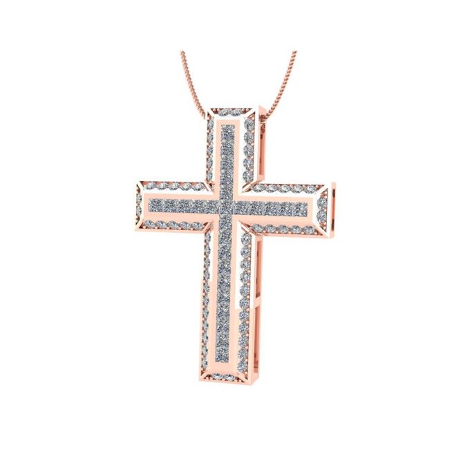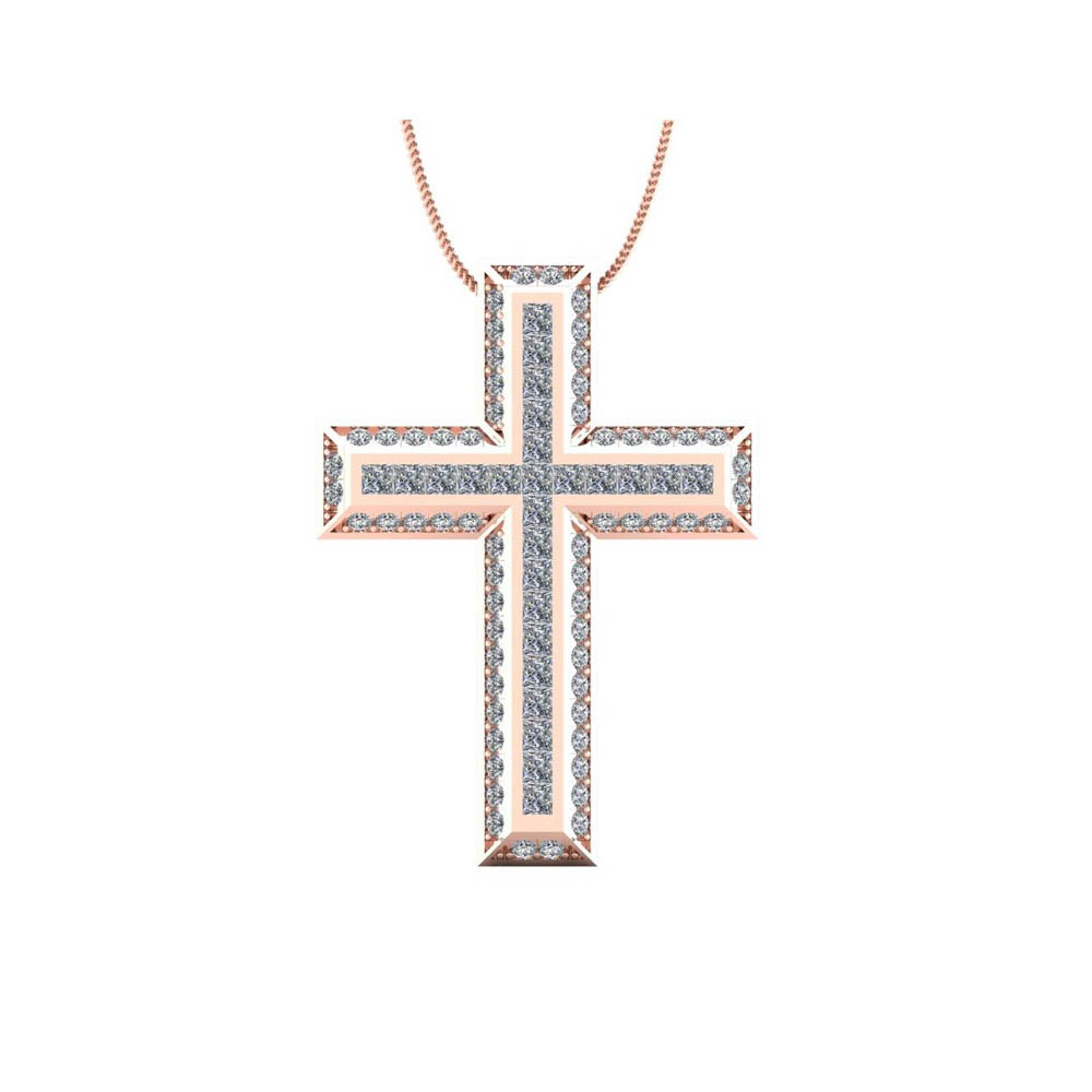 14K Gold White Diamond oG Collection Cross Pendant Featuring 0.39 cts Princess Shaped White Diamond, 0.6 cts Round Shaped White Diamond