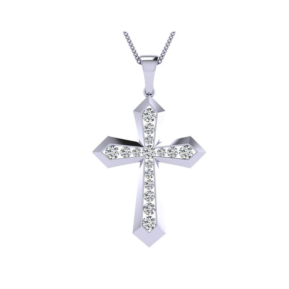 14K Gold oG Collection Cross Pendants Round Brilliant Cut 0.36 CTW