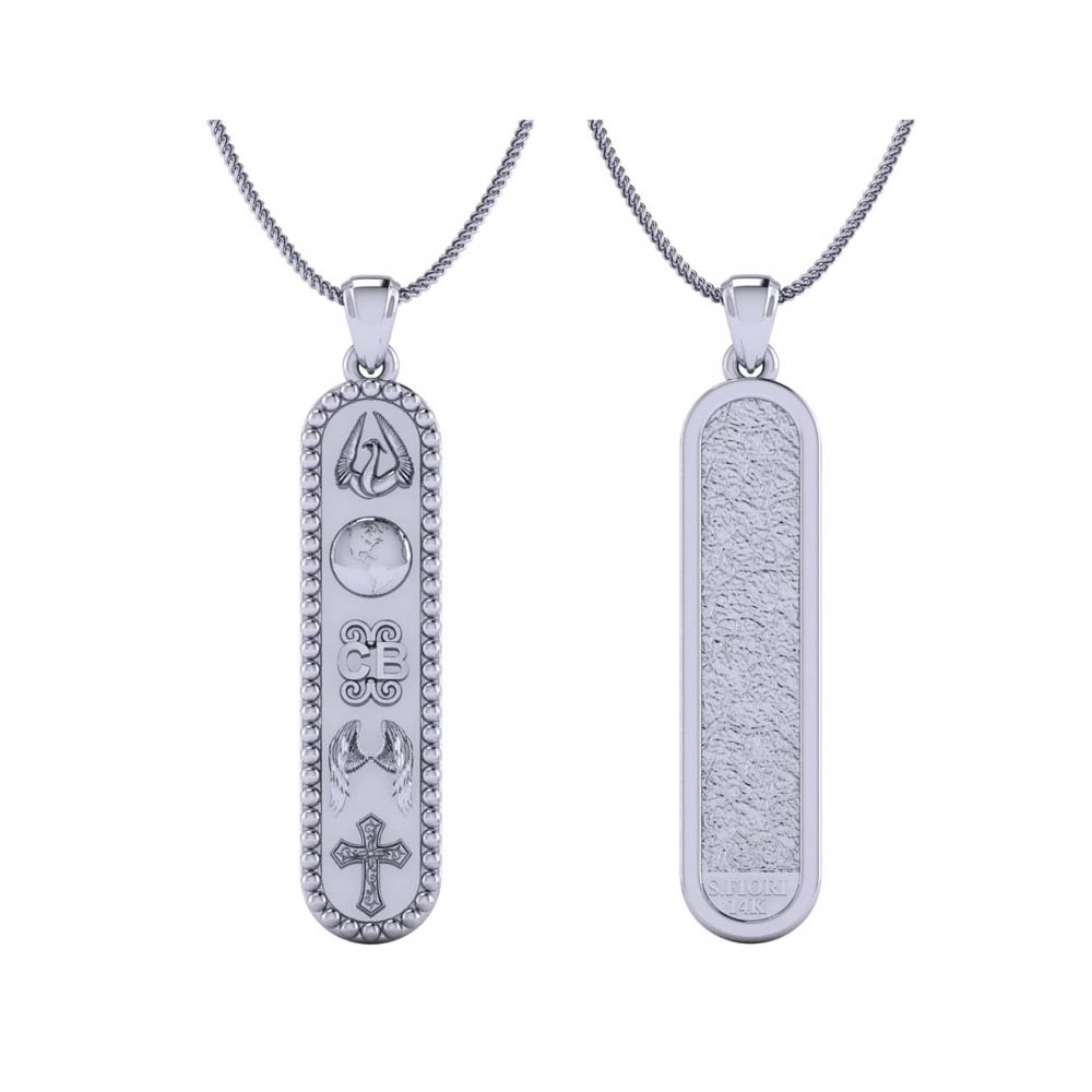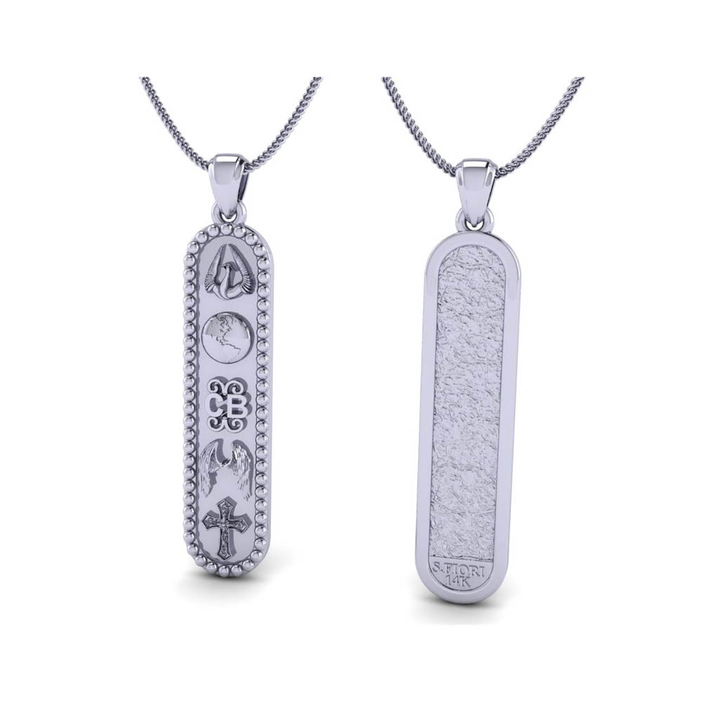 14K Gold oG Collection Crown Pendant Featuring Symbols of Crown Surrounded by Beaded and Textured Reverse side sized 35 mm