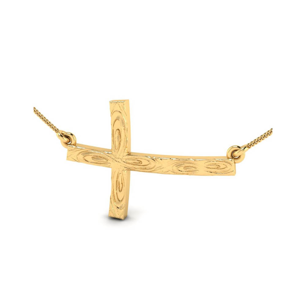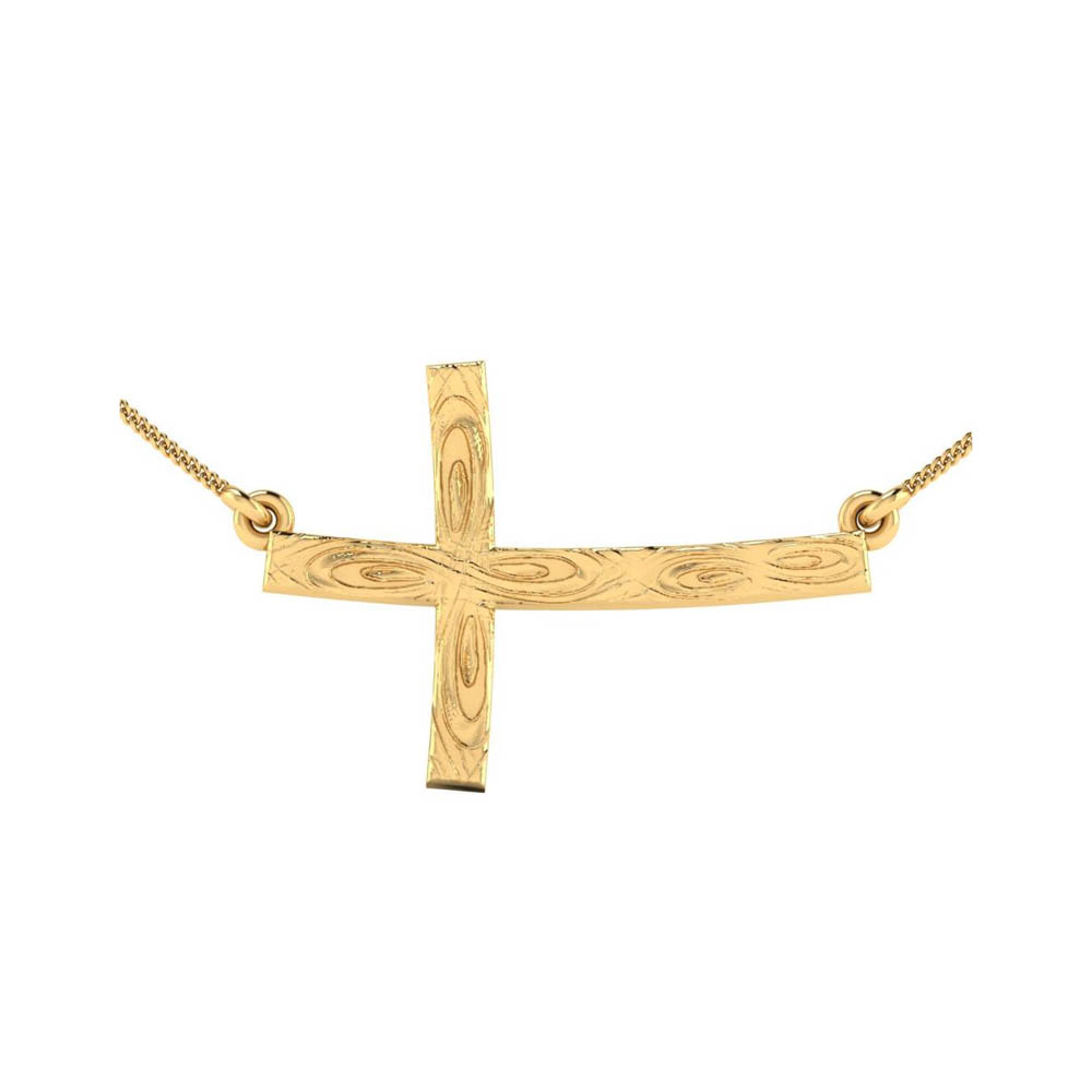 14K Gold oG Collection sideways Worship Cross Pendant Wooden Textured Cross