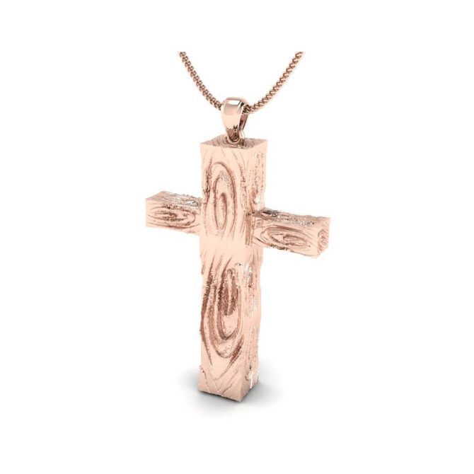 14K Gold oG Collection Chantal Cross Pendant Featuring squared Wooden Textured Traditional Gold Cross in size 33x23MM