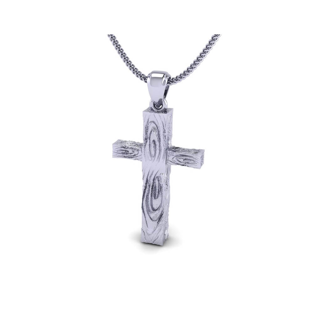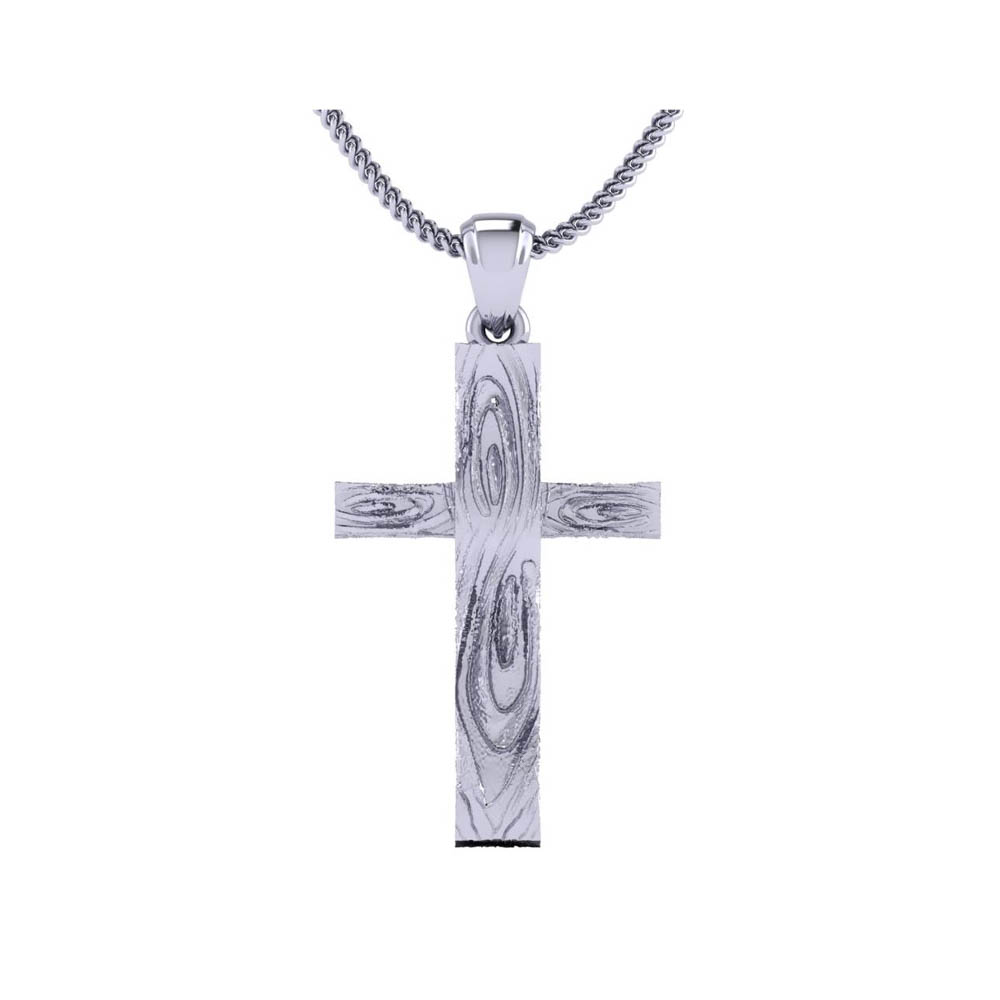 14K Gold oG Collection Wooden Textured square Traditional Cross Pendant .