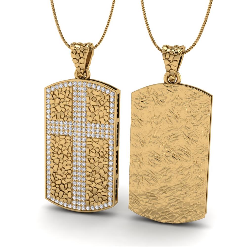 14K Gold oG Wear Collection White Diamond Pendant Featuring 2.24 Cts Round Cut White Diamond
