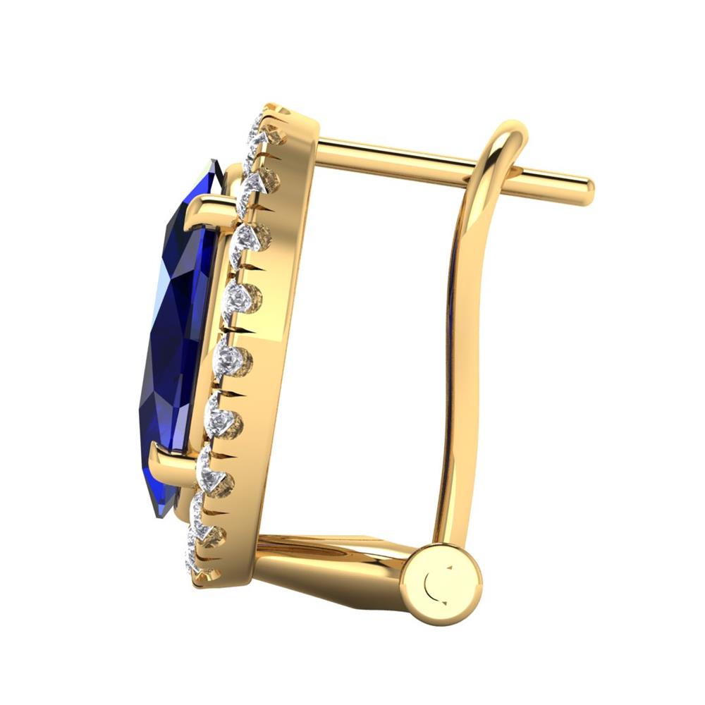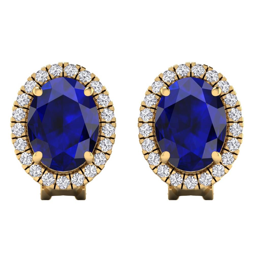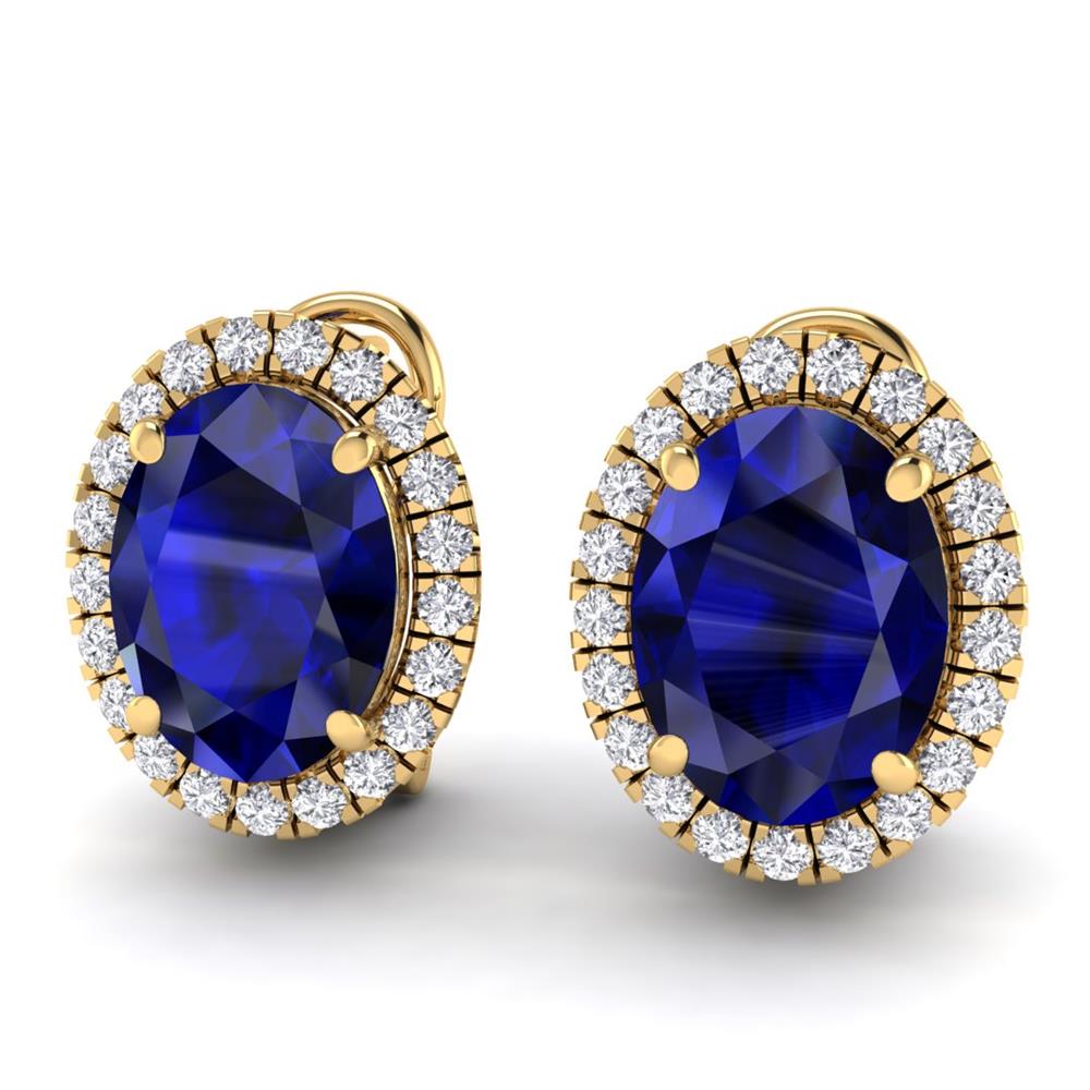 14K Gold Translucent Blue Sapphire Earrings Featuring 12.00 Cts Oval Shaped Blue Sapphire Surrounded by 0.78 Cts Round Cut White Diamond