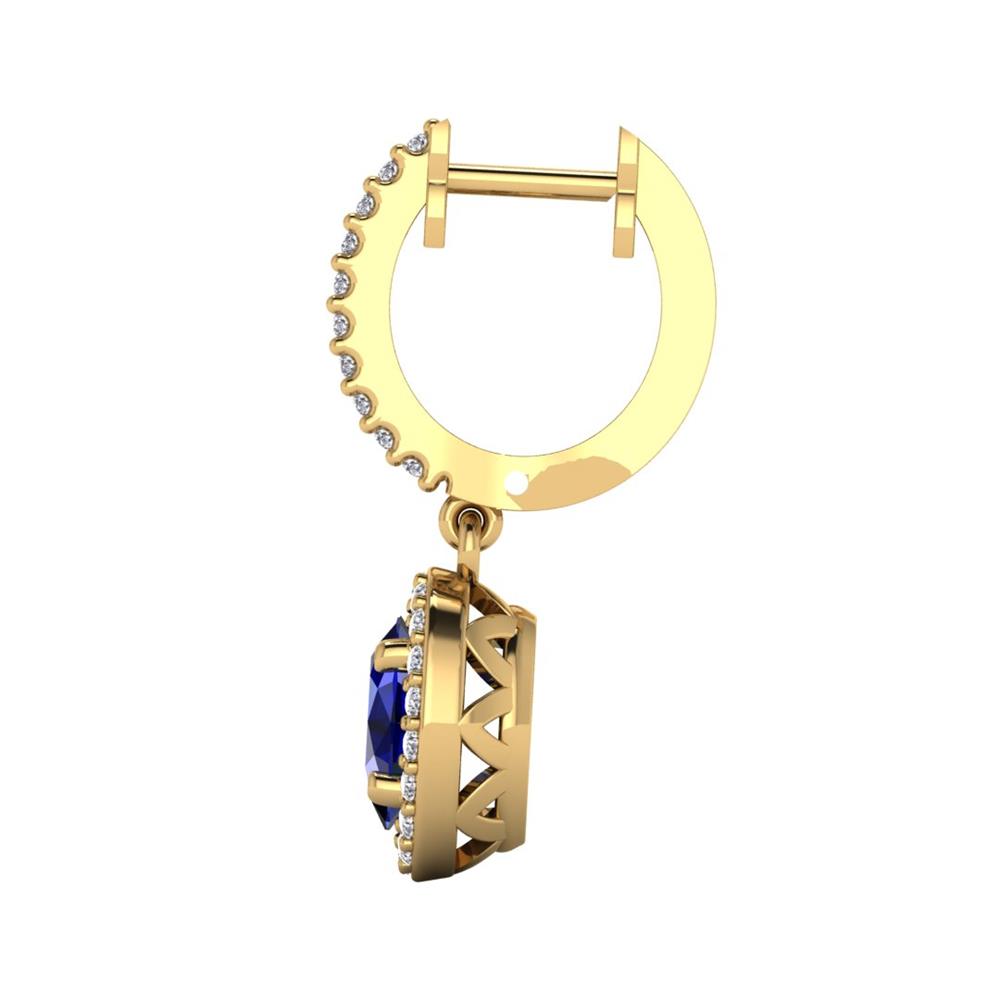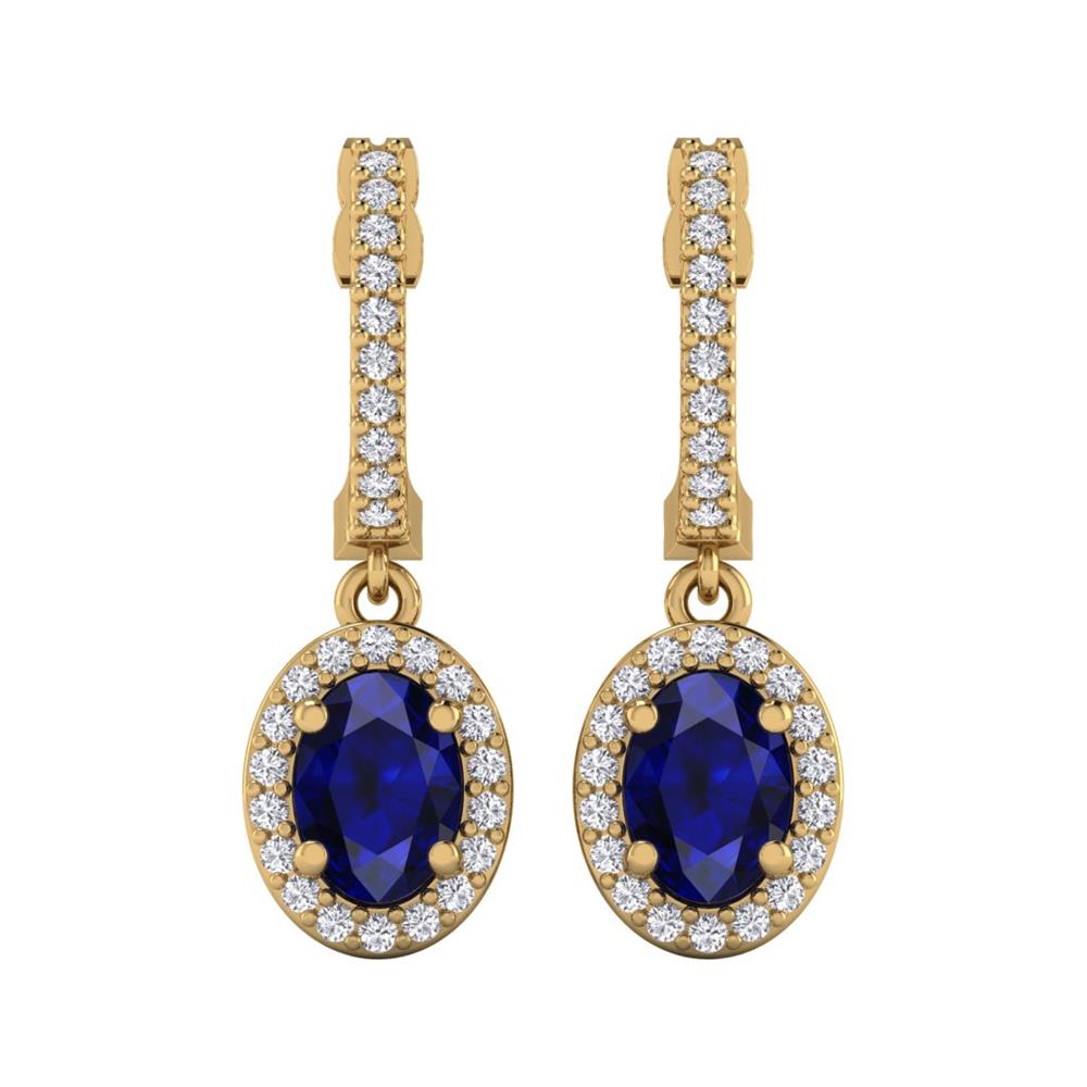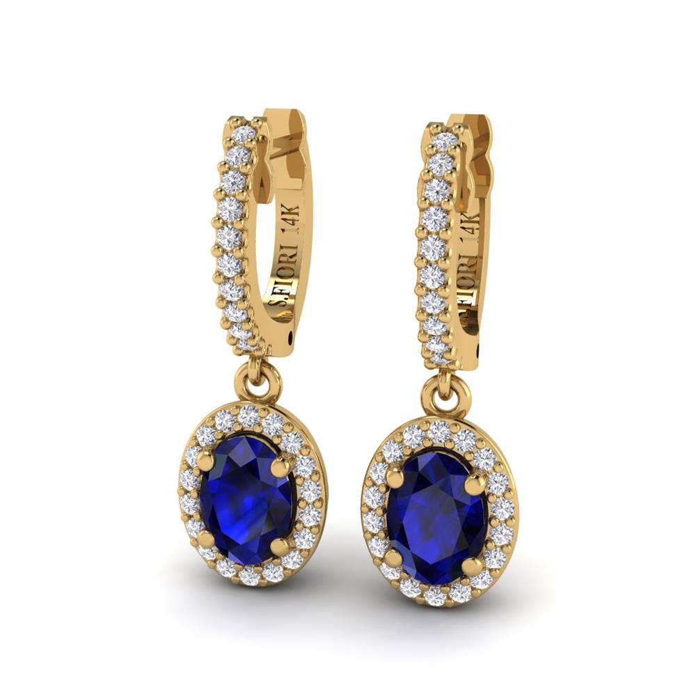 14K Gold Translucent Blue Sapphire Earrings Featuring 2.00 Oval Shaped Translucent Blue Sapphire surrounded by 0.36 Round White Diamond