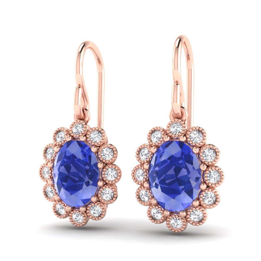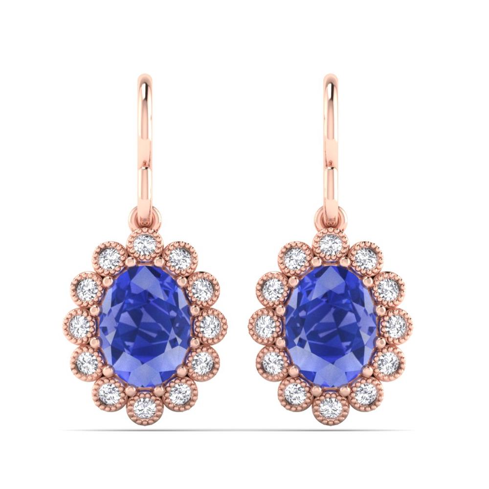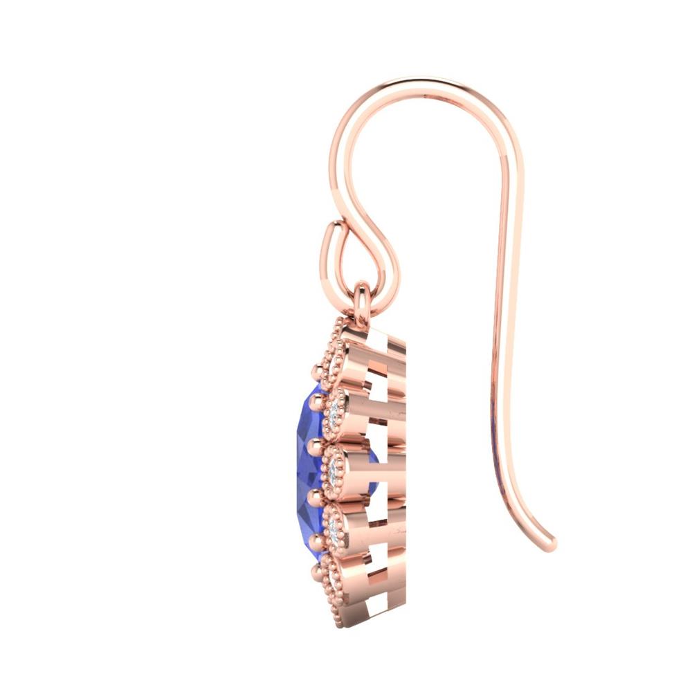14K Gold Translucent Blue Sapphire Earrings Featuring 3.10 Oval Shaped Translucent Blue Sapphire surrounded by 0.30 Round White Diamond