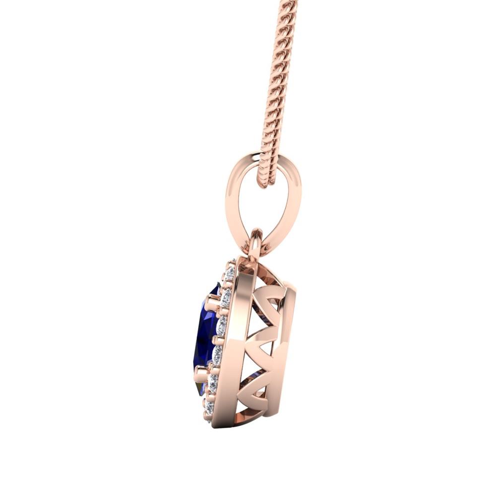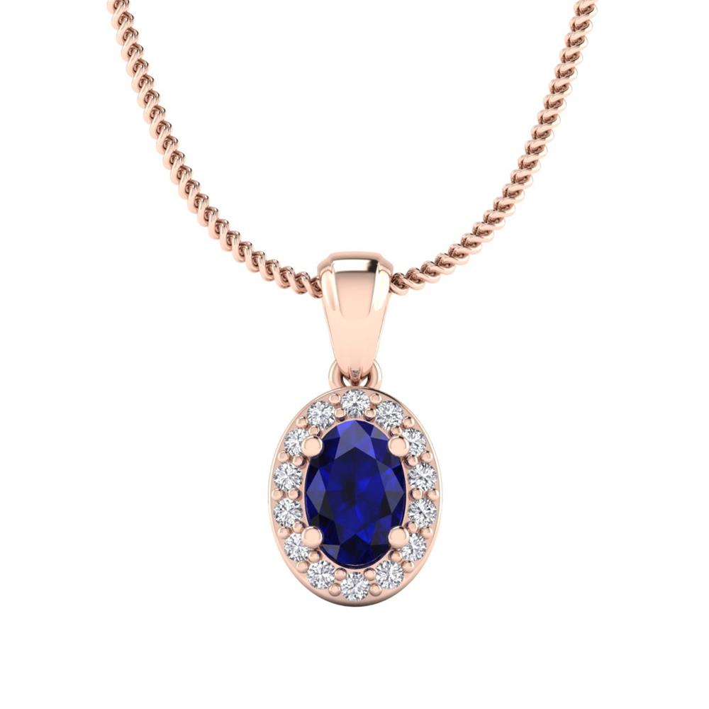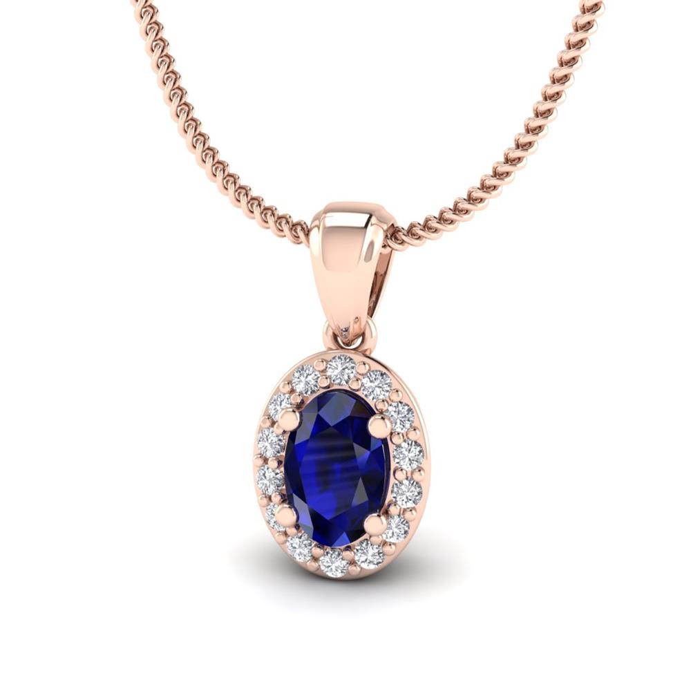14K Gold Translucent Blue Sapphire Pendant Featuring 0.66 Oval Shaped Translucent Blue Sapphire surrounded by 0.09 Round White Diamond