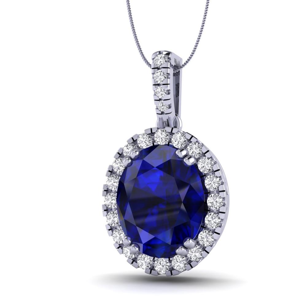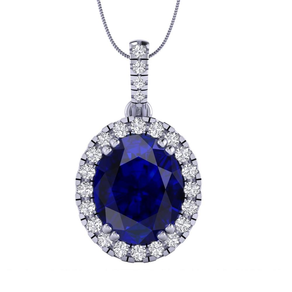 14K Gold Translucent Blue Sapphire Pendant Featuring 4.25 Oval Shaped Translucent Blue Sapphire surrounded by 0.31 Round White Diamond