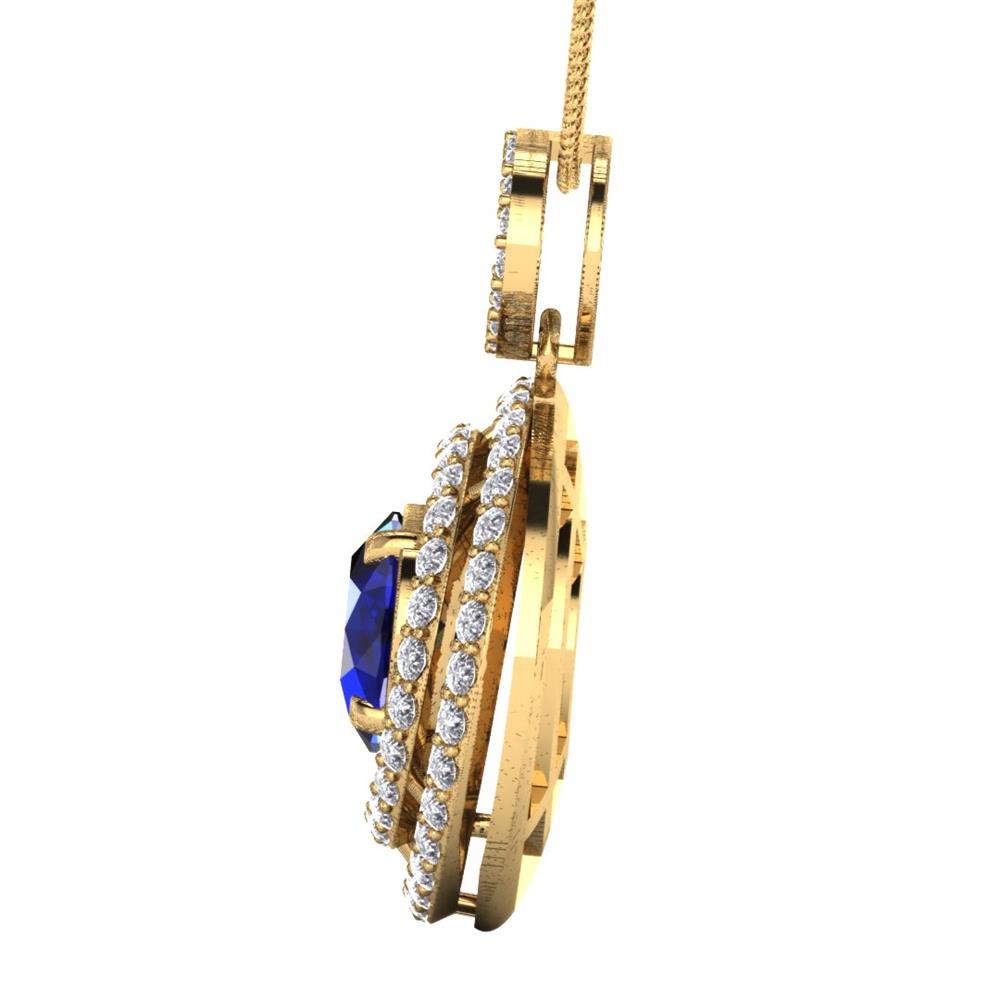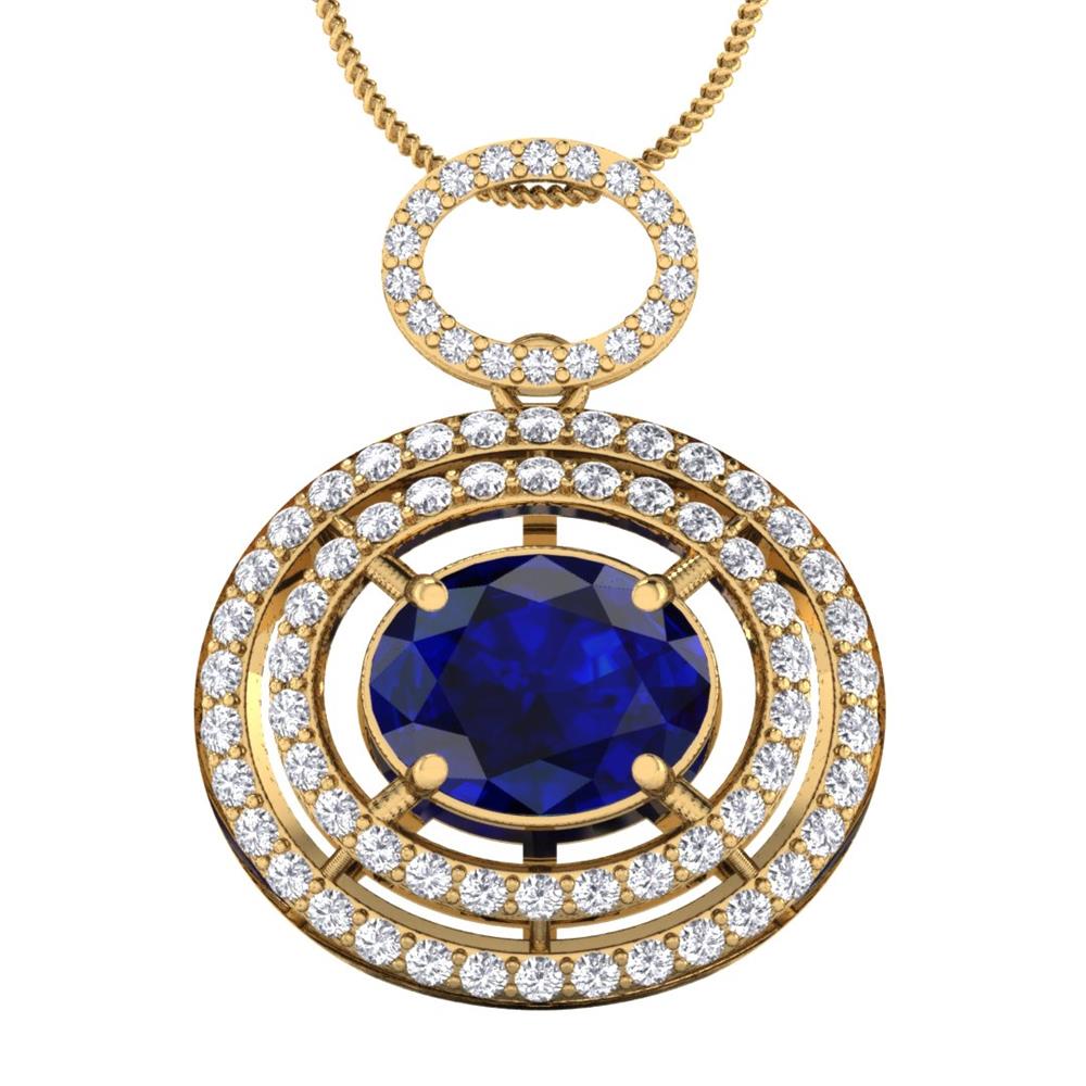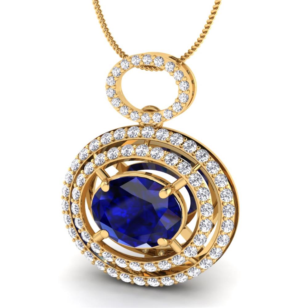 14K Gold Translucent Blue Sapphire Pendant Featuring 4.92 Cts Oval Shaped Blue Sapphire surrounded by 1.81 cts Round Shaped White Diamond