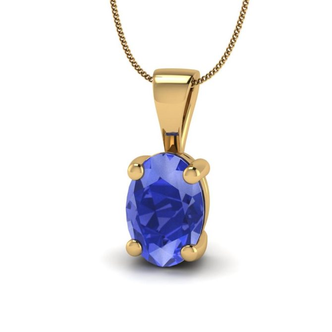 14K Gold Translucent Blue Sapphire Pendants Featuring 0.65ct Oval Shaped Blue Sapphire