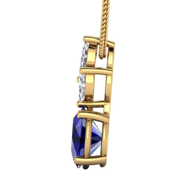 14K Gold Translucent Blue Sapphire Pendants Featuring 1.15ct Oval Shaped Blue Sapphire surrounded by 0.36 cts Marquise Shaped White Diamond