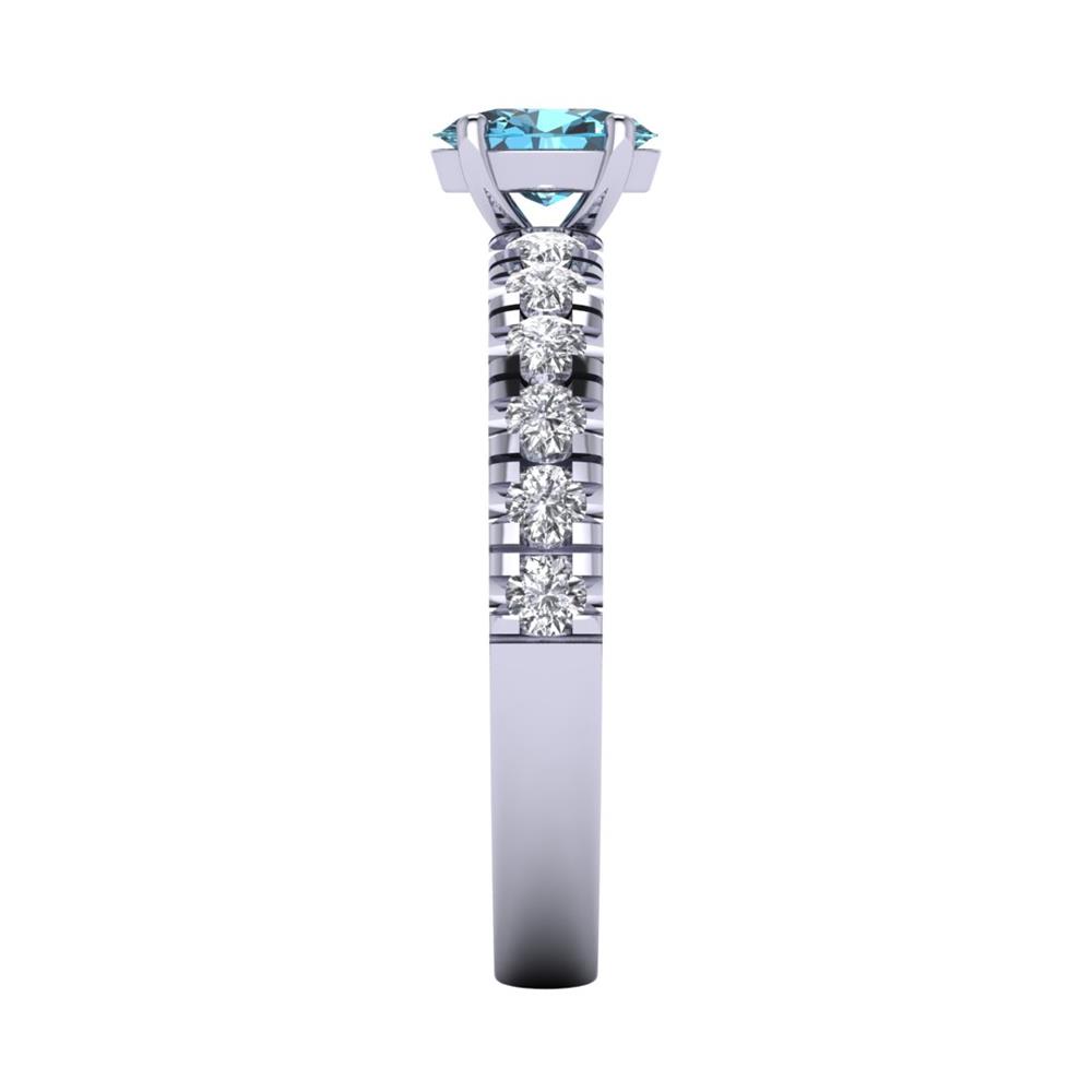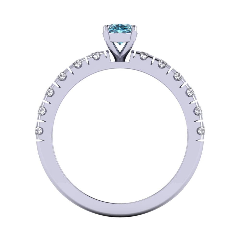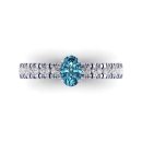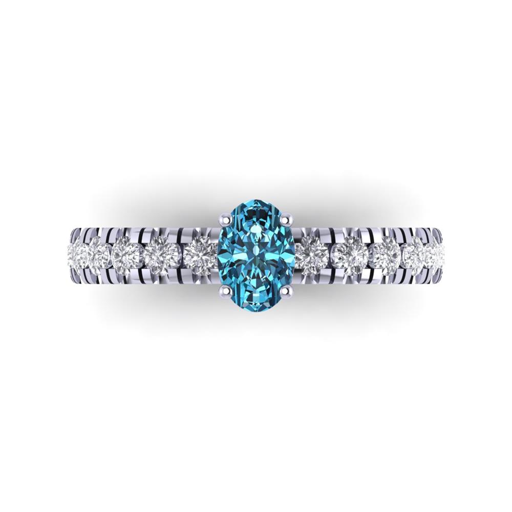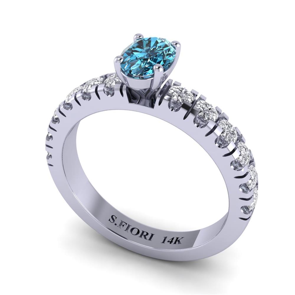 14K Gold Blue Diamond Enhanced Color Ring Featuring 0.50 Oval Shaped Blue Diamond Enhanced Color surrounded by 0.46 Round White Diamond