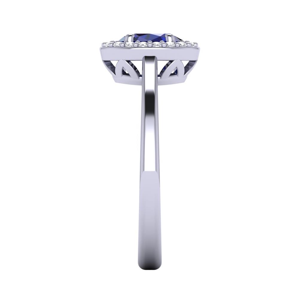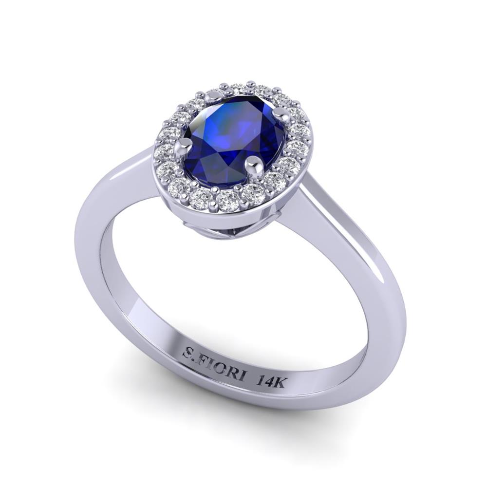 14K Gold Translucent Blue Sapphire Ring Featuring 1.00 Oval Shaped Translucent Blue Sapphire surrounded by 0.12 Round White Diamond