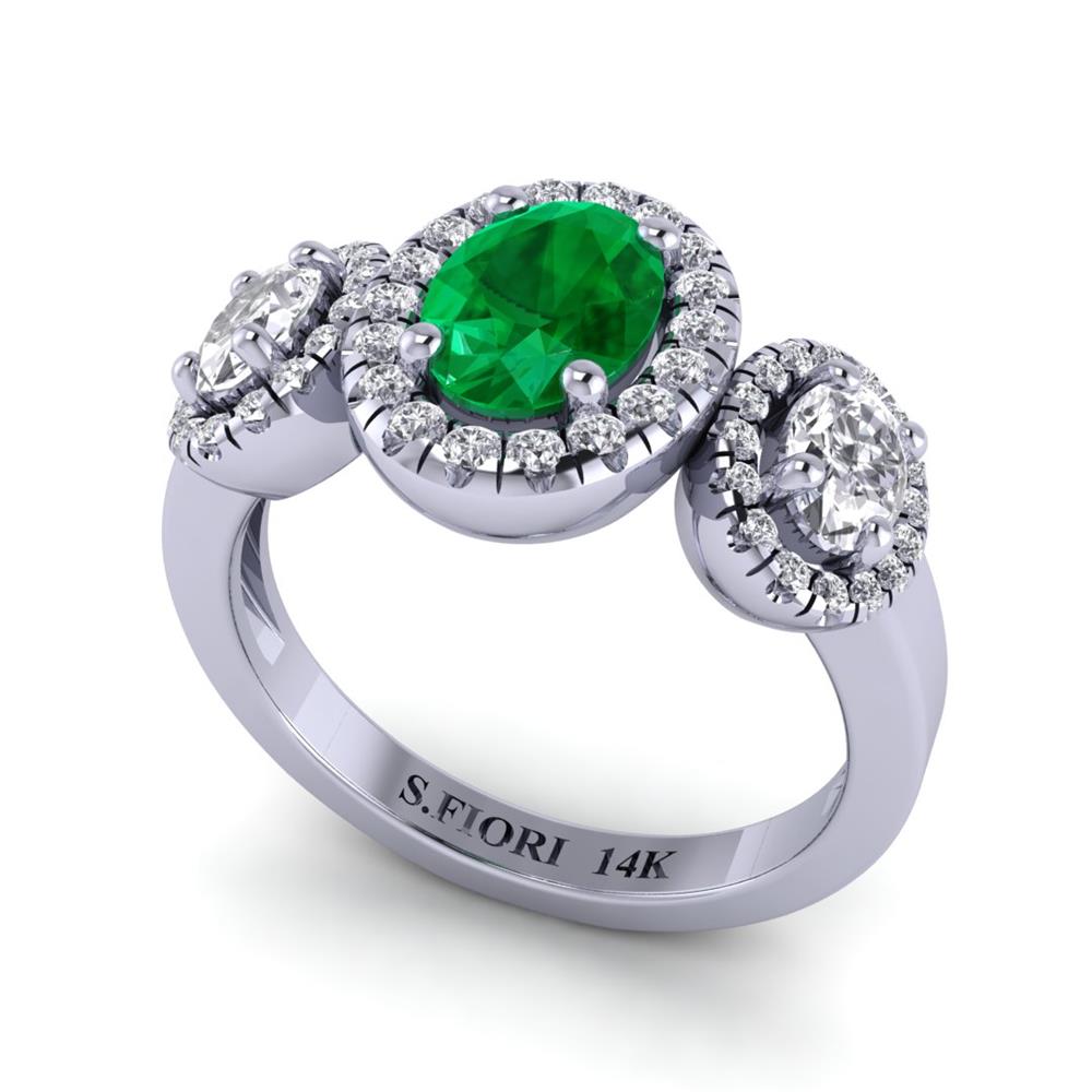 14K Gold Stunning White Diamond Ring Featuring 0.70 CTW Oval Shaped Stunning White Diamond with 0.60 cts Oval Shaped White Diamond, 0.30 cts Round Shaped White Diamond on the sides.