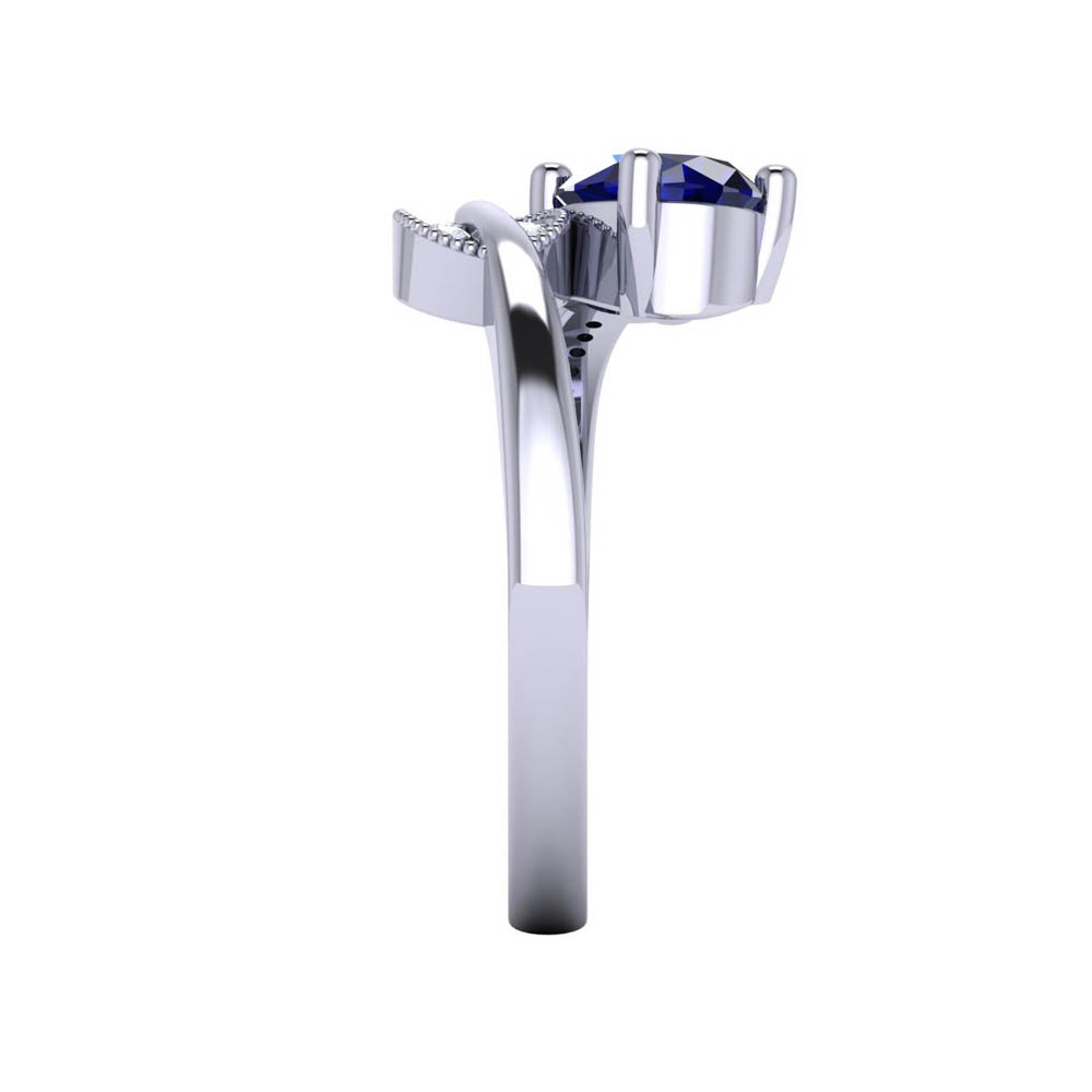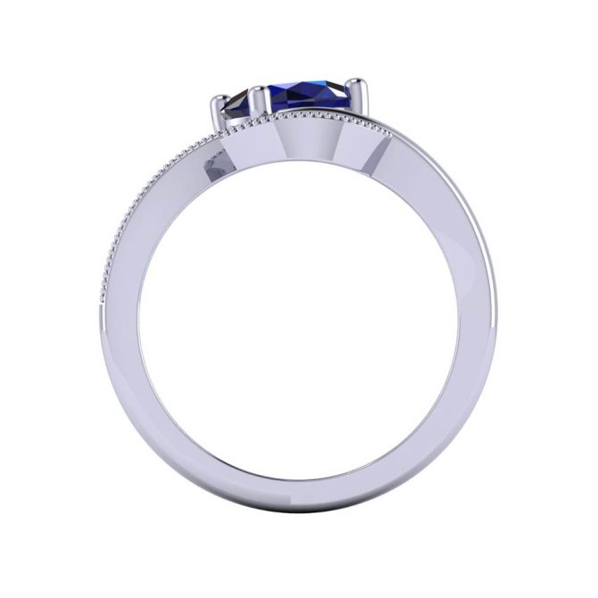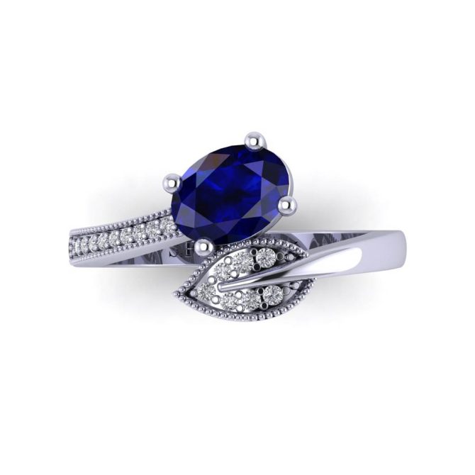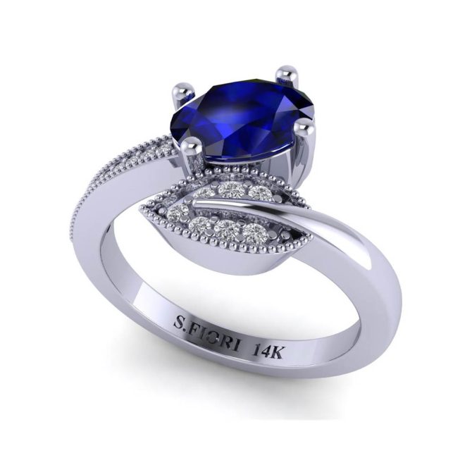 14K Gold Translucent Blue Sapphire Ring Featuring 1.55 ct Oval Shaped Translucent Blue Sapphire surrounded by 0.10 cts Round Shaped White Diamond