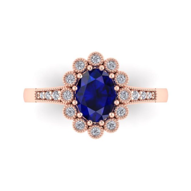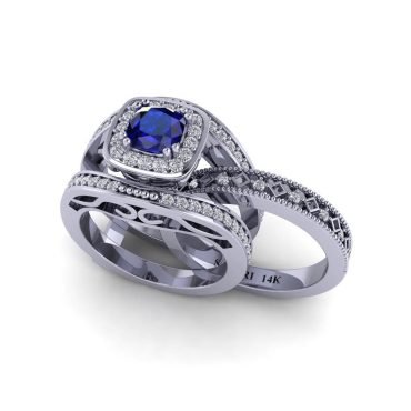 14K Gold Translucent Blue Sapphire Ring Featuring 1.50 Oval Shaped Translucent Blue Sapphire surrounded by 0.21 Round White Diamond