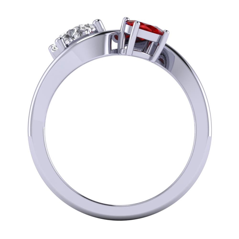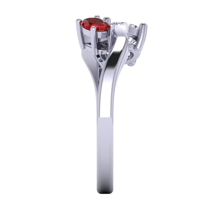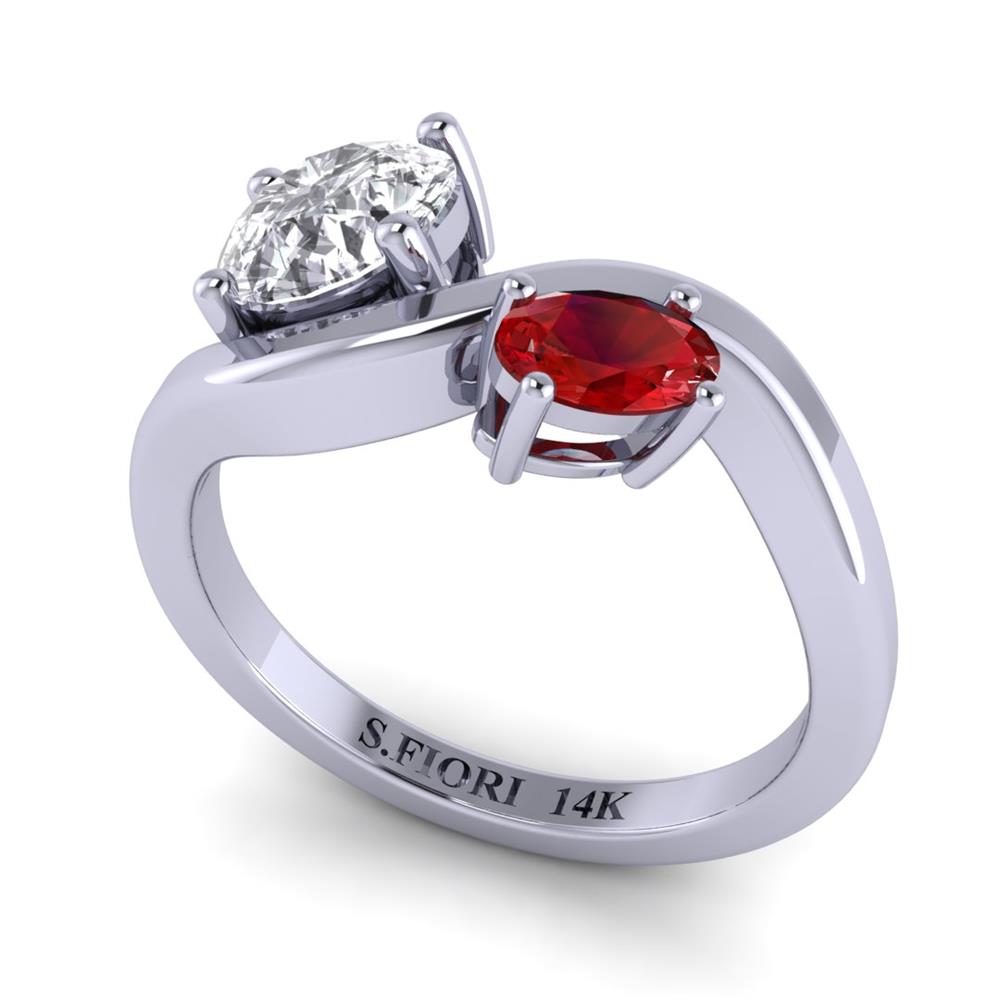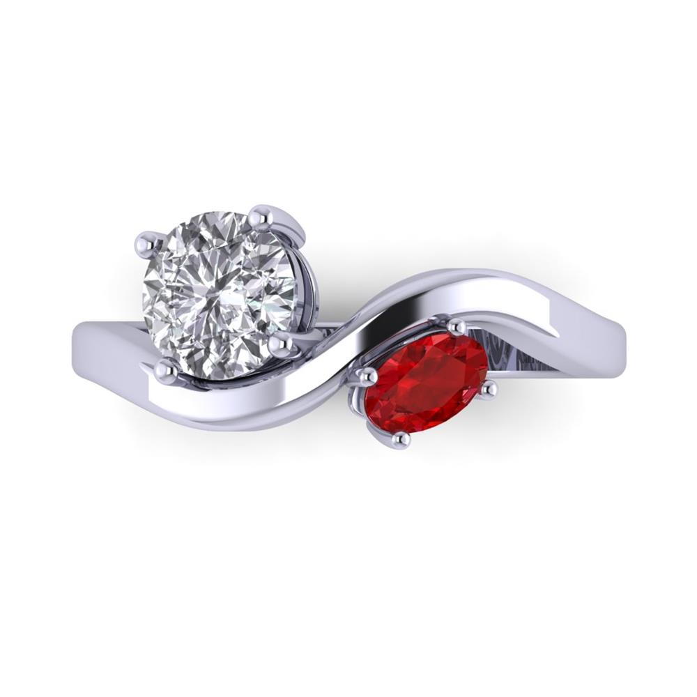 14K Gold Stunning White Diamond Ring Featuring 1.00 Oval Shaped Stunning White Diamond surrounded by 1.00 Round Red Ruby