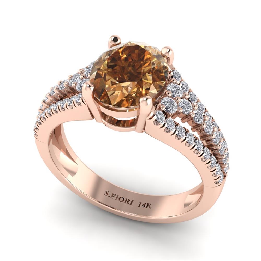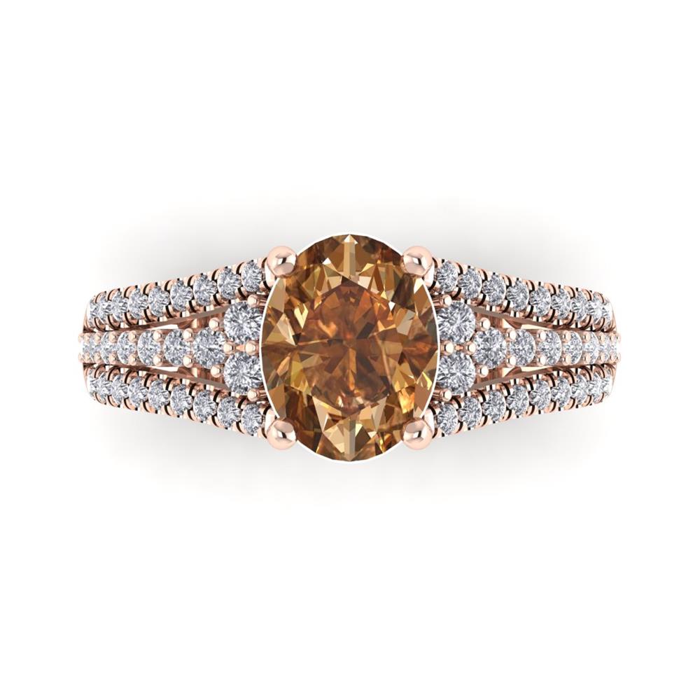 14K Gold Blue Diamond Enhanced Color Ring Featuring 1.70 Oval Shaped Blue Diamond Enhanced Color surrounded by 0.23 Round White Diamond