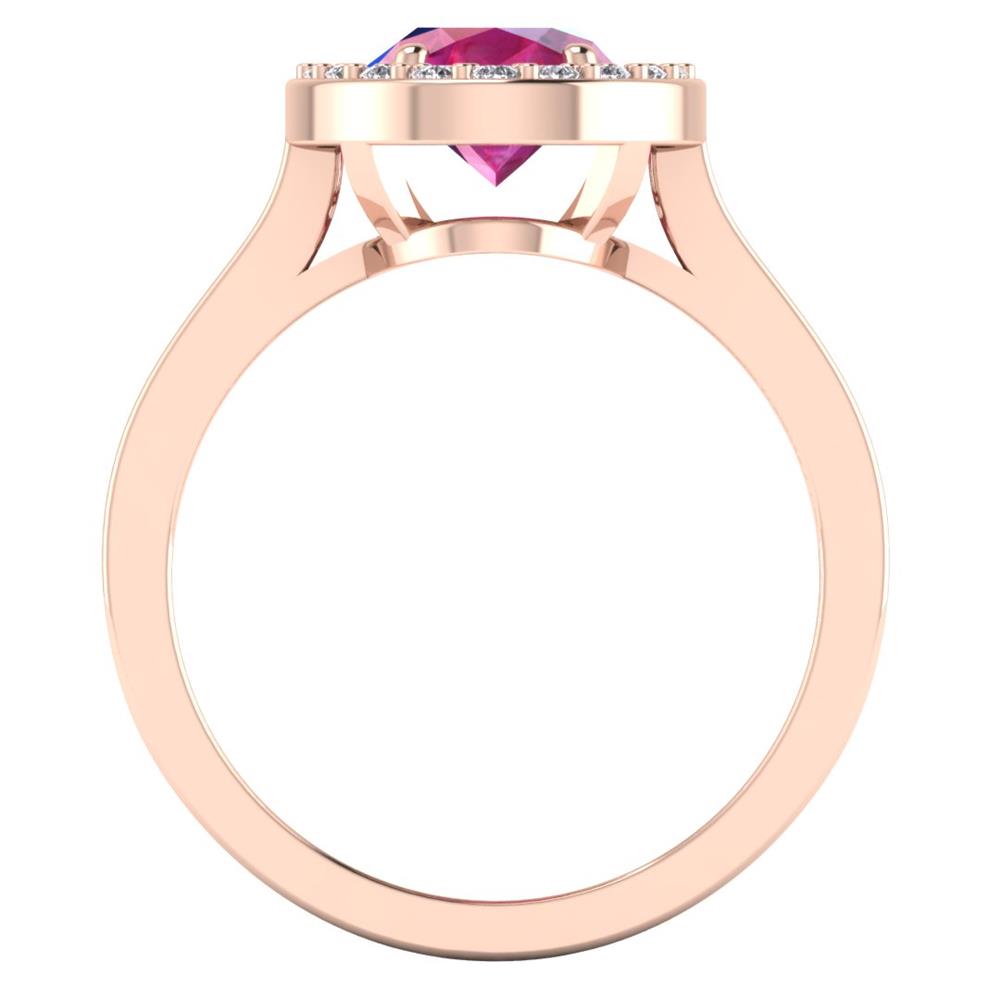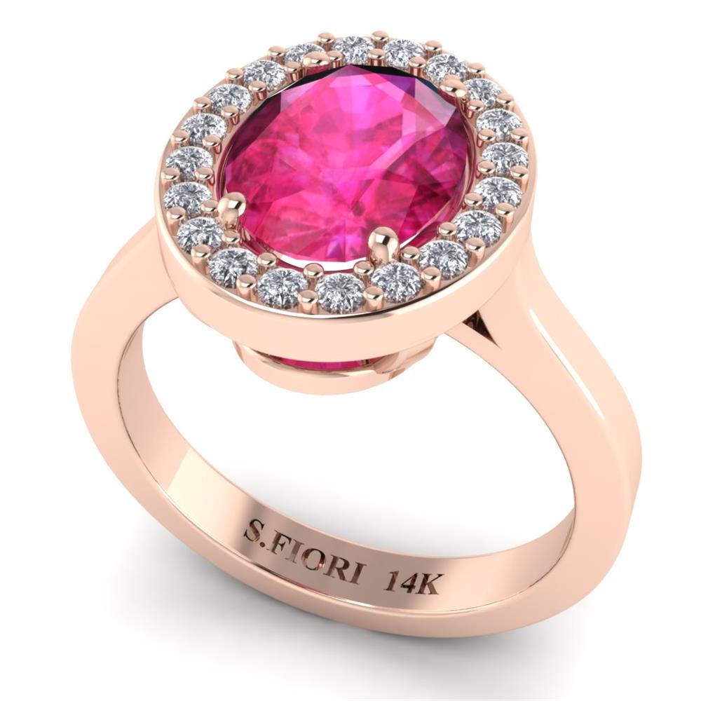 14K Gold Translucent Blue Sapphire Ring Featuring 2.25 Cts Oval Shaped Blue Sapphire Surrounded by 0.21 cts Round Shaped White Diamond