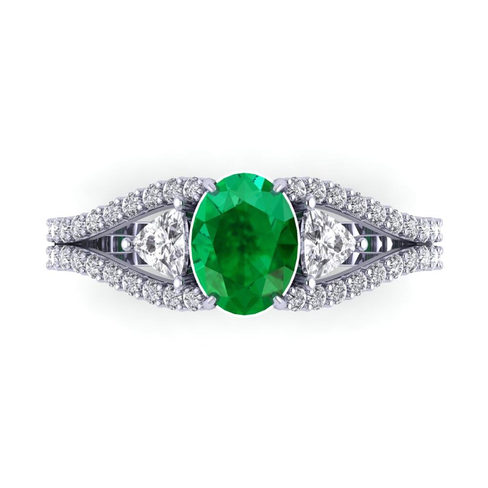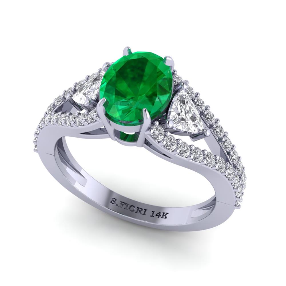 14K Gold Blue Diamond Enhanced Color Ring Featuring 1.00 ct Oval Shaped Blue Diamond Enhanced Color surrounded by 1.54 ct Trilliant White Diamond, 0.42 ct Round White Diamond