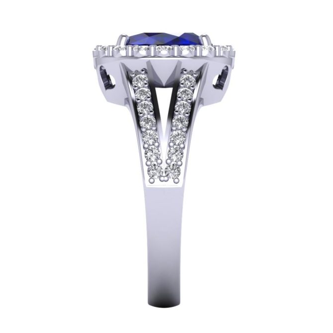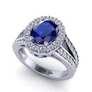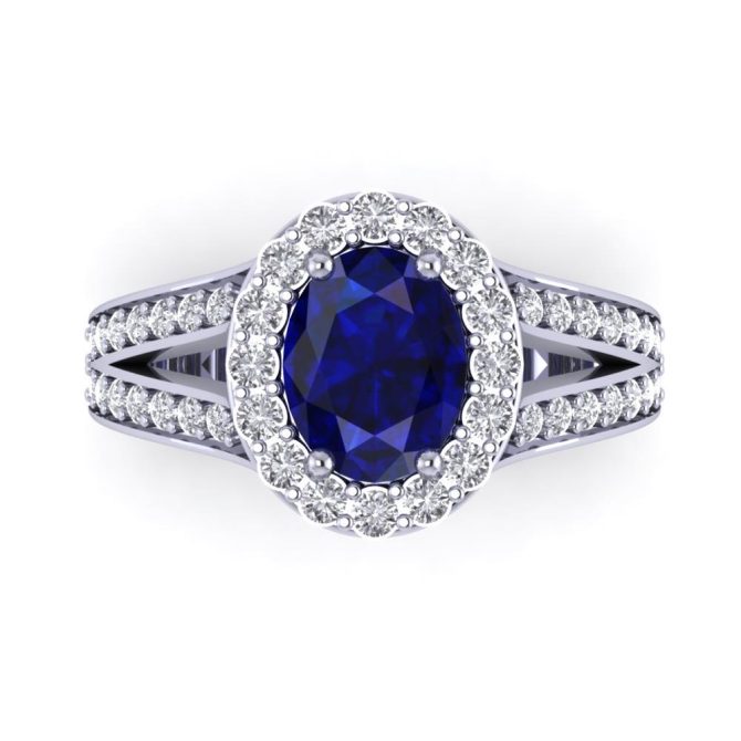 14K Gold Translucent Blue Sapphire Ring Featuring 2.25 Oval Shaped Translucent Blue Sapphire surrounded by 0.35 Round White Diamond