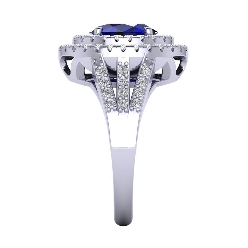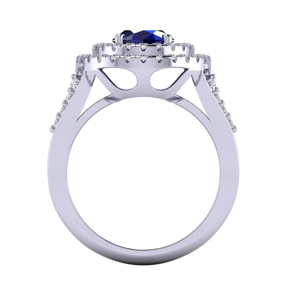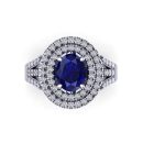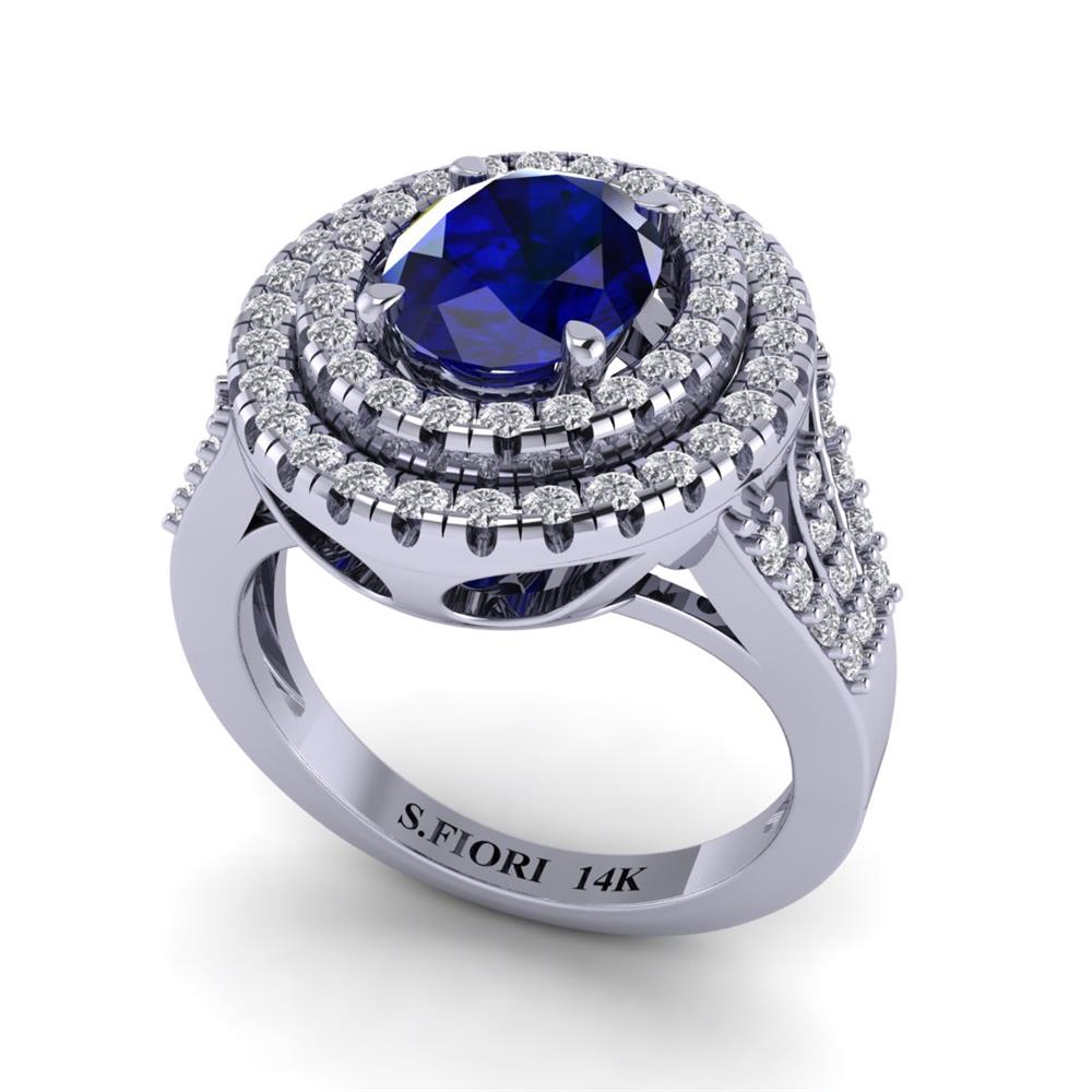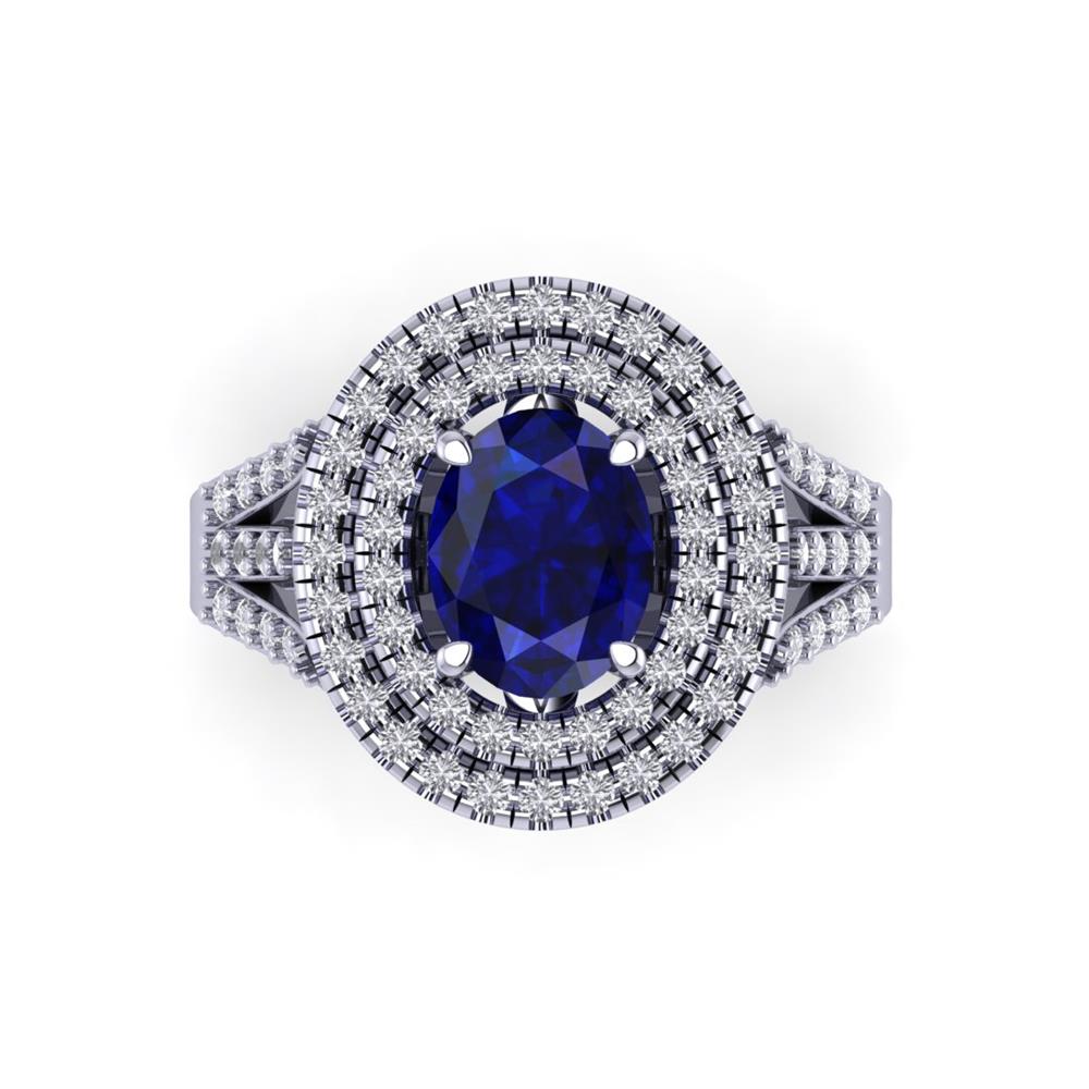 14K Gold Translucent Blue Sapphire Ring Featuring 2.25 Oval Shaped Translucent Blue Sapphire surrounded by 0.59 Round White Diamond, 0.18 ct Round White Diamond .