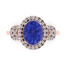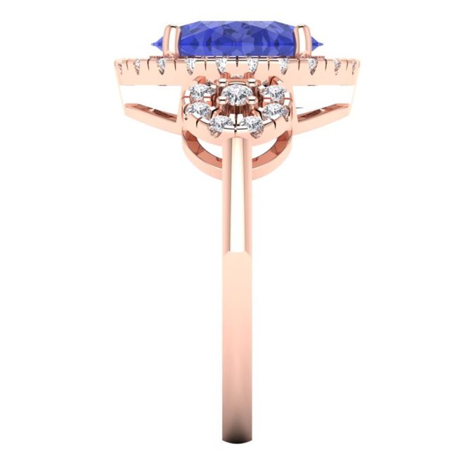 14K Gold Translucent Blue Sapphire Ring Featuring 3.50 Cts Oval Shaped Blue Sapphire surrounded by 0.41 cts Round Shaped White Diamond