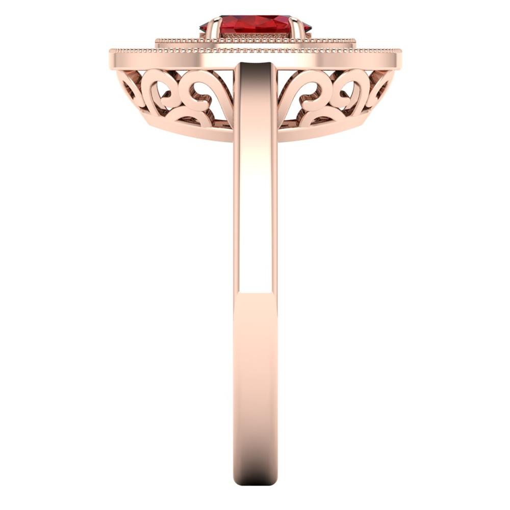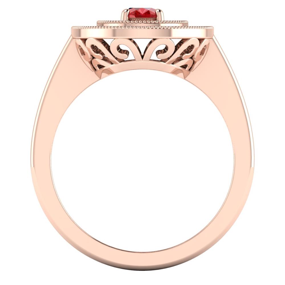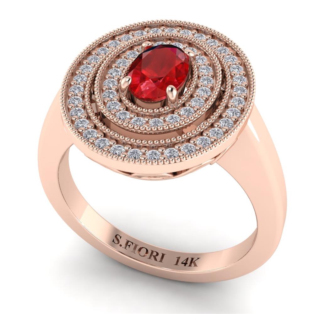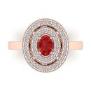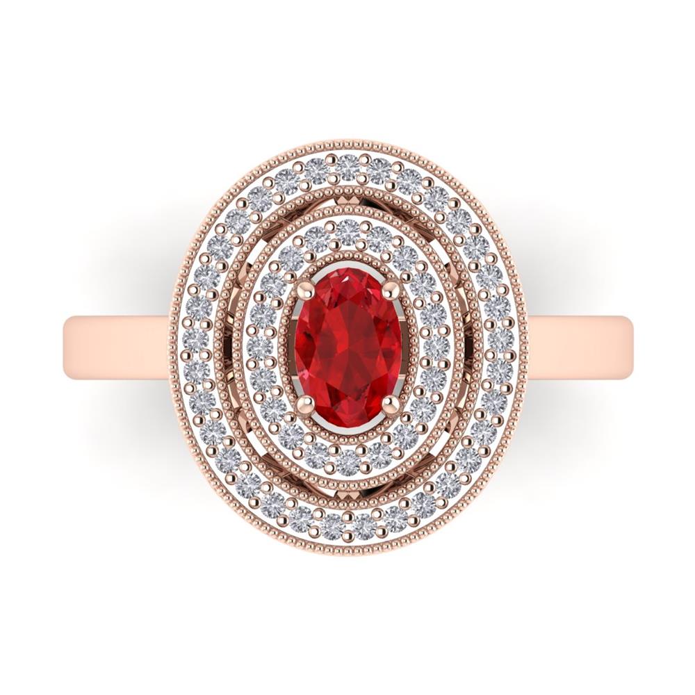 14K Gold Lustrous Red Ruby Rings Featuring 0.66 Cts Oval Shaped Red Ruby surrounded by 0.32 Cts Round White Diamond
